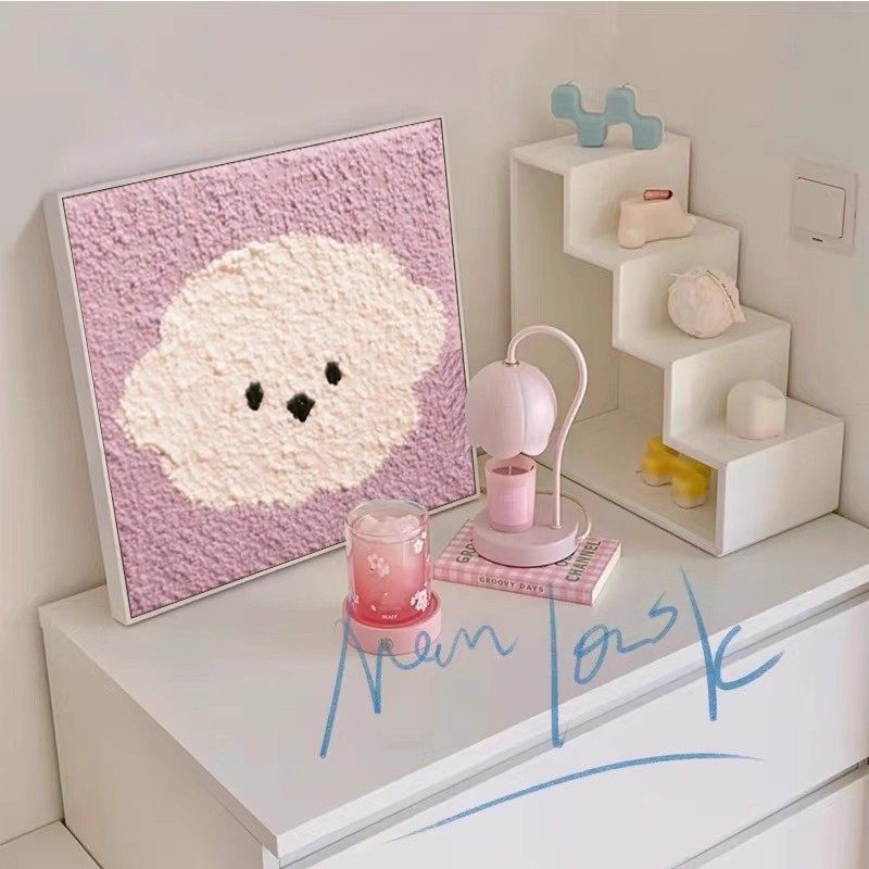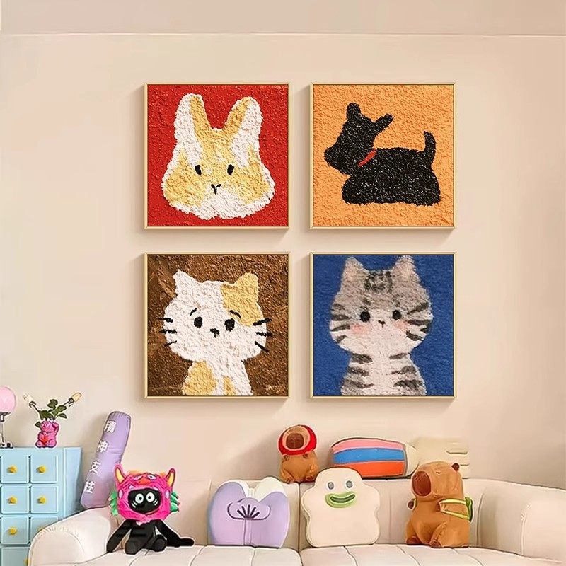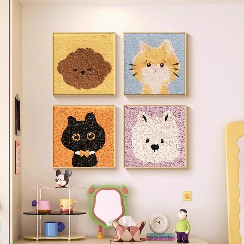 可爱小狗猫咪宠物头像成品装 饰画仿油画小众方形卧室儿童房摆挂画