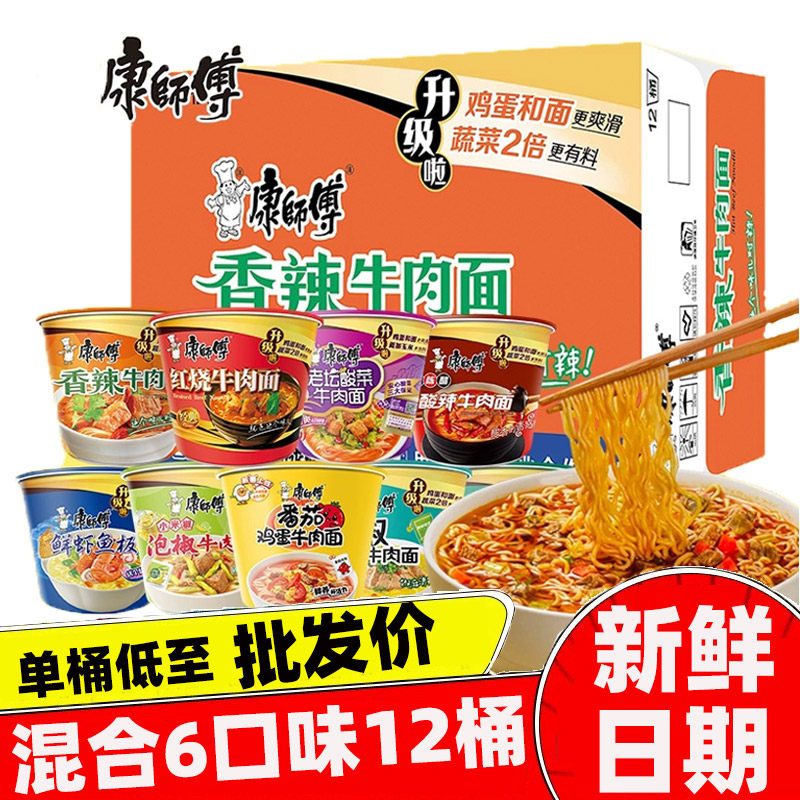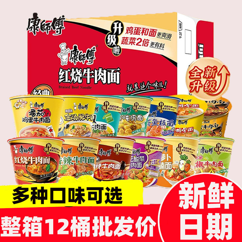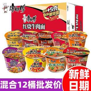 康师傅经典 面整箱混合12桶批发价红烧香辣老坛牛肉方便泡面 桶装