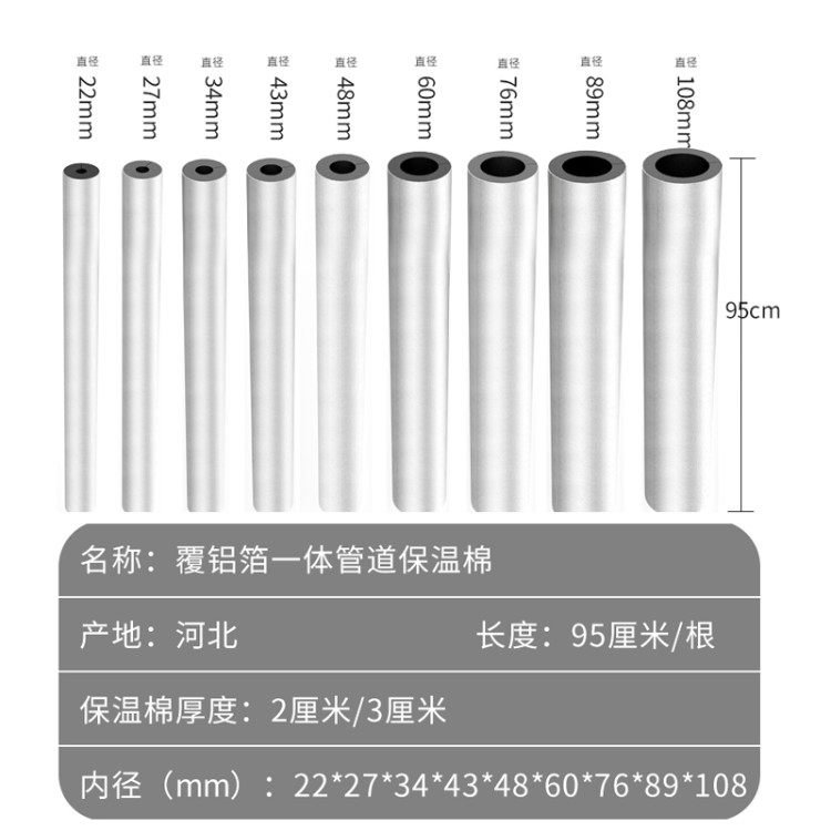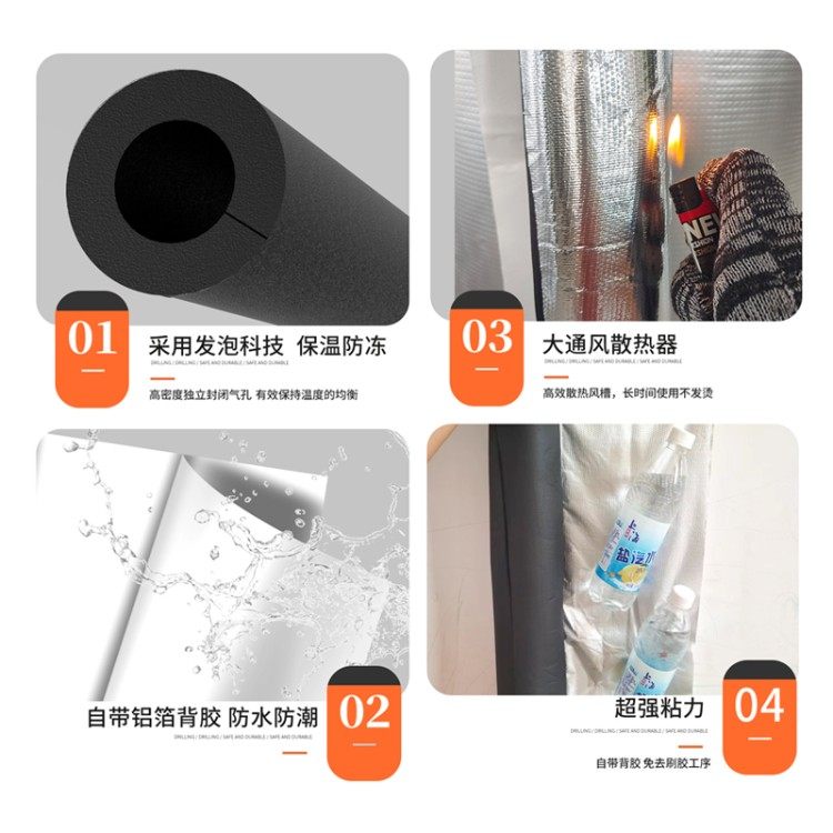 开口式 铝箔自粘橡塑保温套管防冻加厚阻燃保温棉室外管道隔热材料