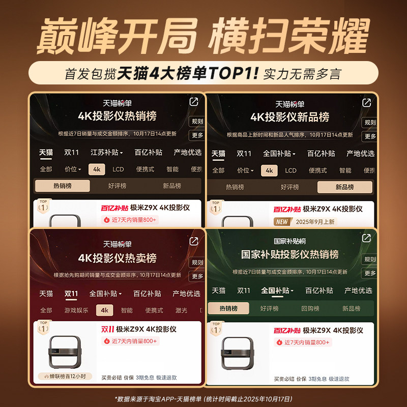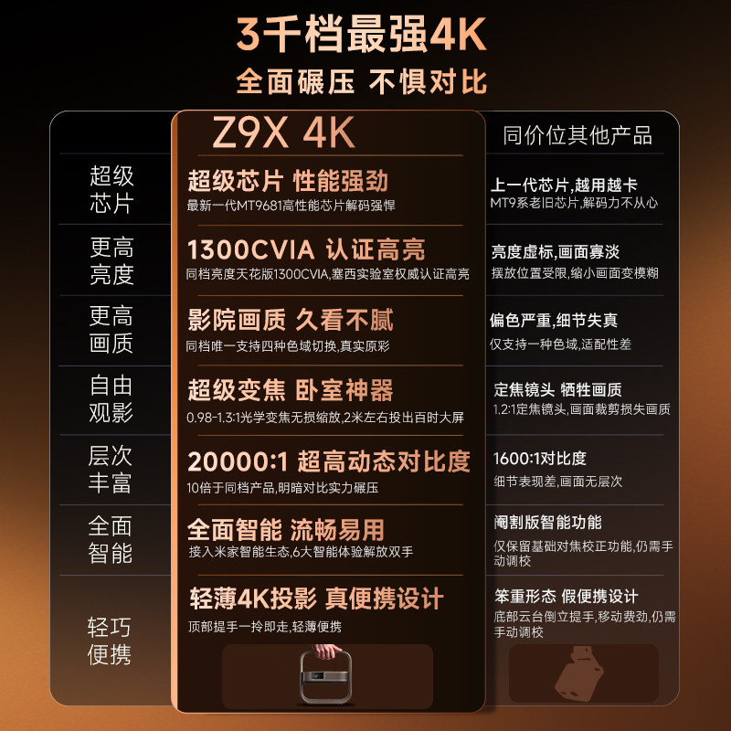 极米Z9X 立减20% 4K全新轻薄4K无损光学变焦家用投影仪超高清高亮度客厅卧室投影机 全国补贴
