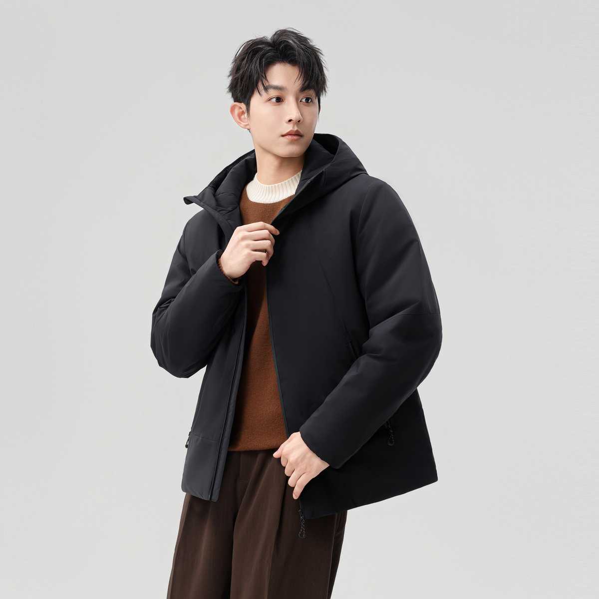 宽松百搭白鸭绒外套 韩版 情侣中戏短款 连帽羽绒服女加厚2025年新款