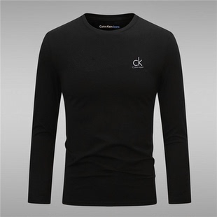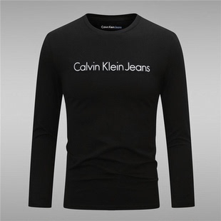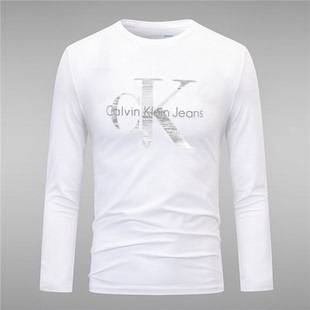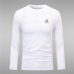 韩版 修身 圆领印花透气百搭日常大码 ck长袖 打底衫 时尚 男装 t恤男士