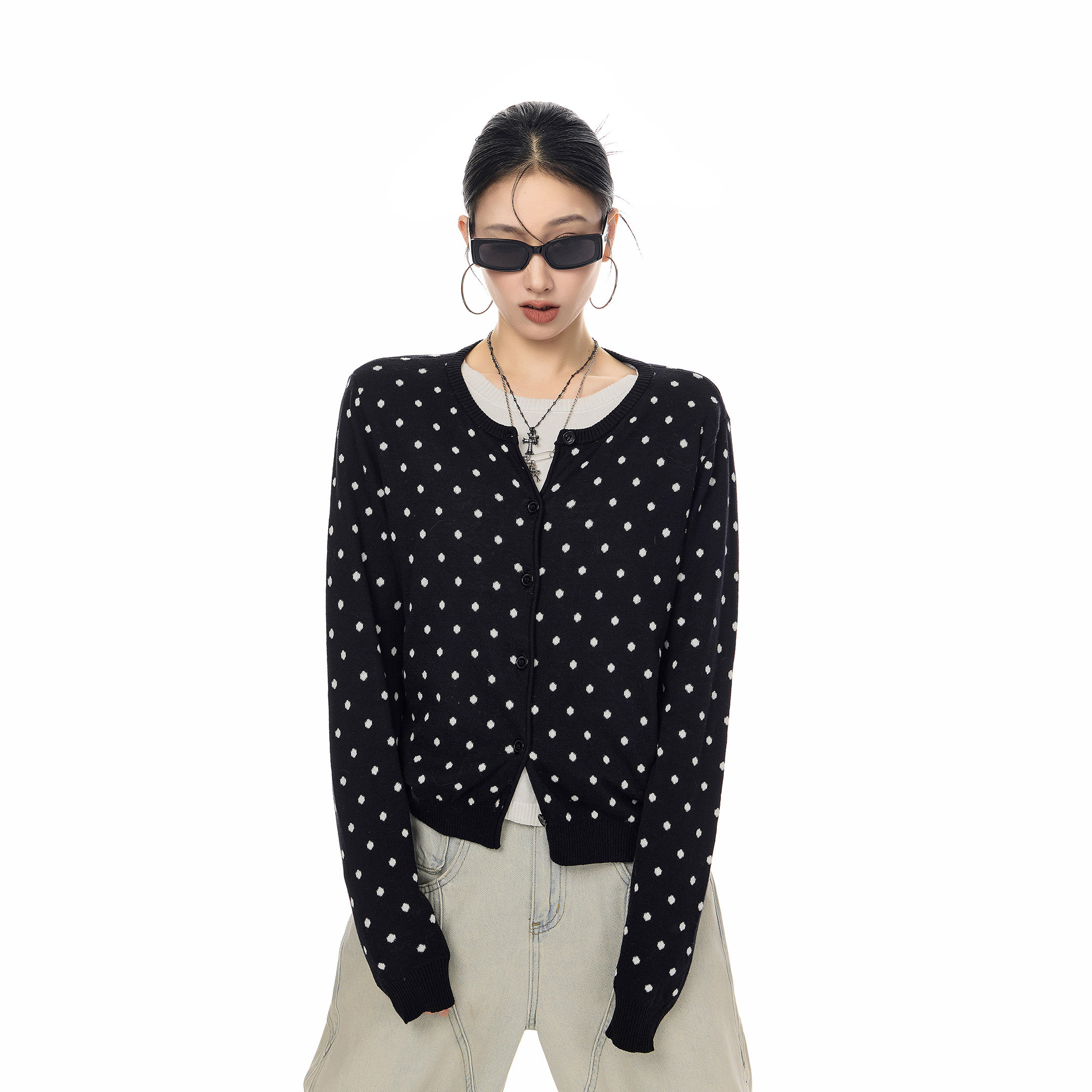 复古修身 美式 波点针织开衫 女2026新款 慵懒毛衣外套 ICH 春季 MODE