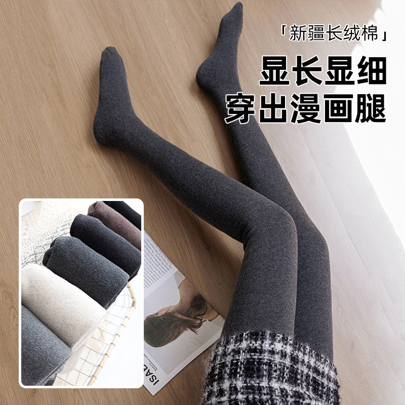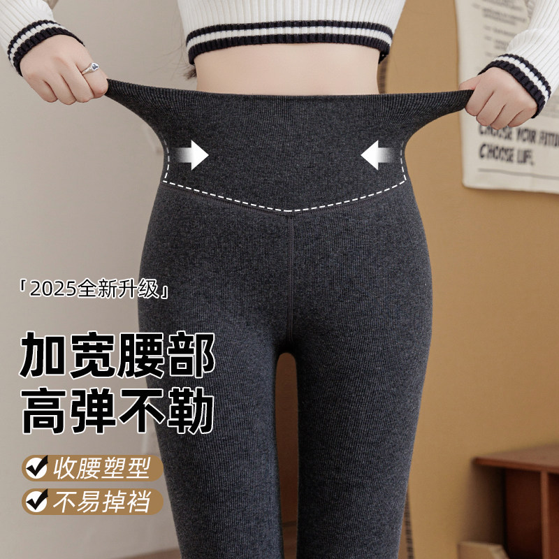 袜加厚棉裤 加绒竖条纹连裤 紧身打底袜 女外穿冬2025新款 灰色打底裤