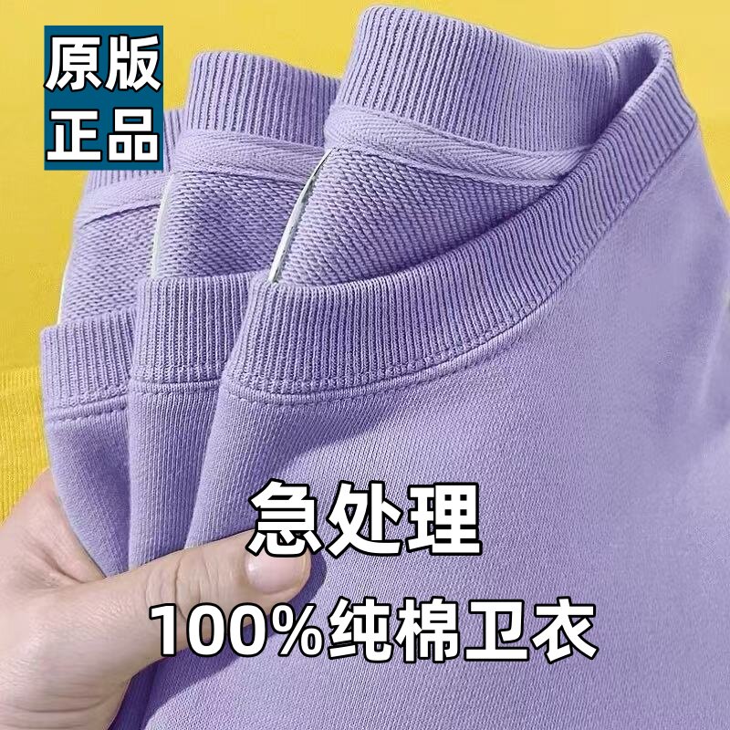 打底衫 宽松上衣秋冬新款 纯色长袖 新疆棉100%纯棉圆领卫衣男女同款