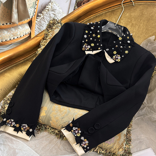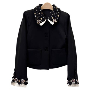 气质短款 MIU系小西服娃娃领钉珠千金感外套2025秋冬新品 甜美法式