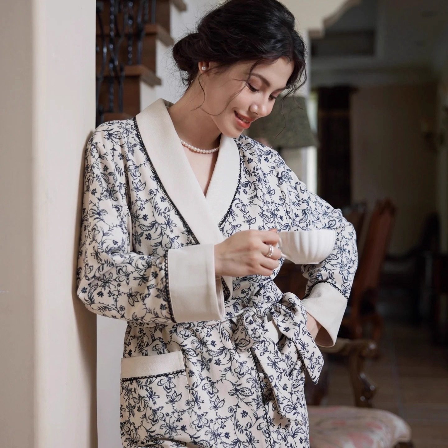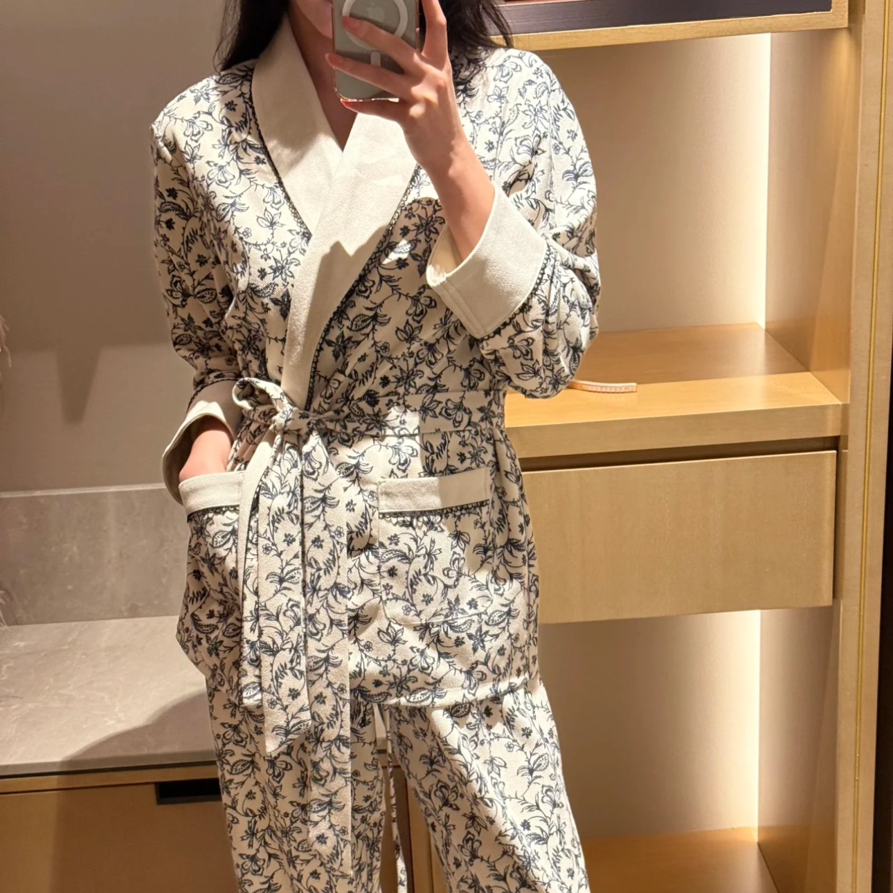 加大码 套装 家居服春秋 秋冬季 芬腾女士睡衣空气棉夹层纯棉加厚长袖