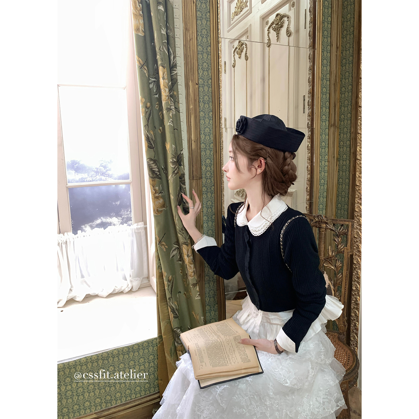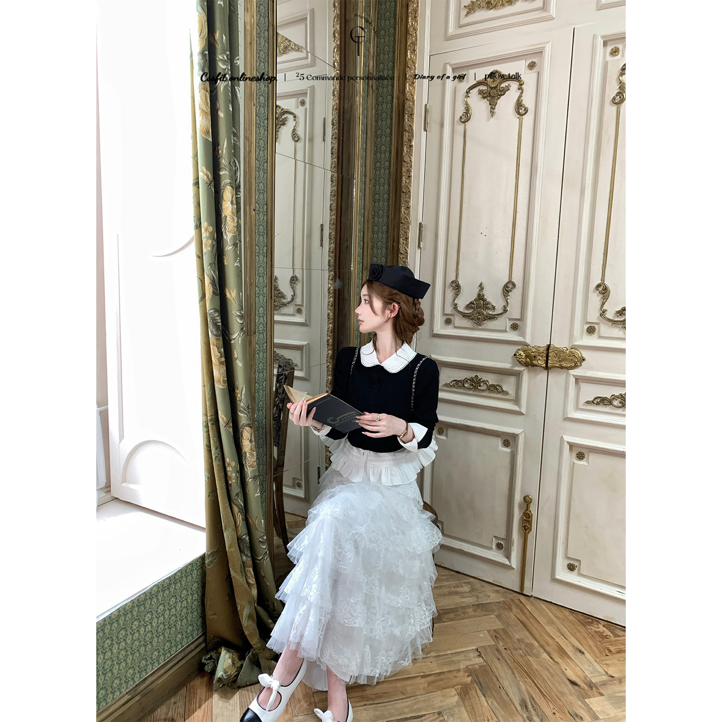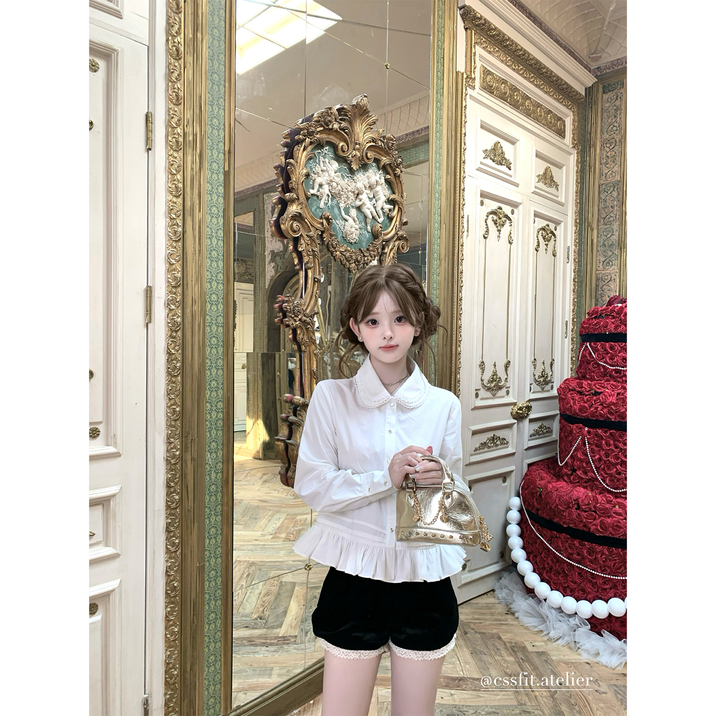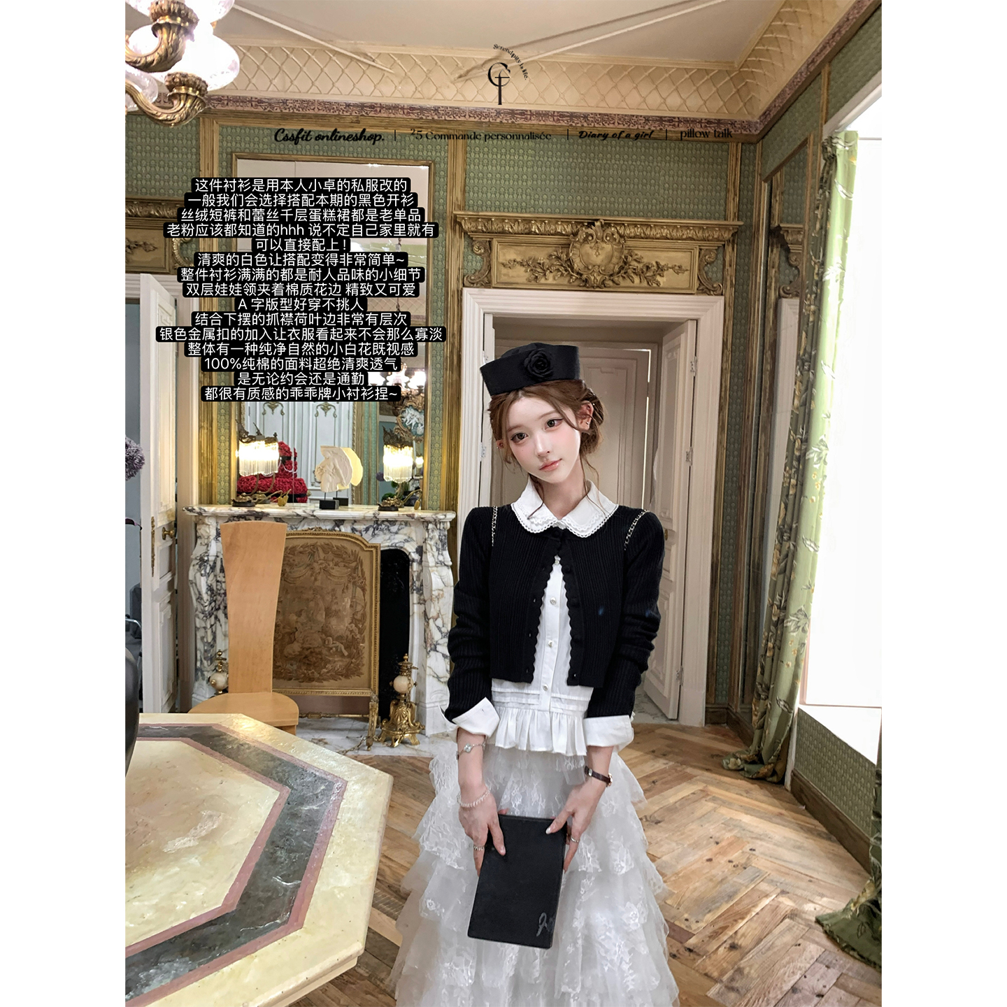 小卓花边拼纱下摆刺绣领纯棉白衬衫 绢羽笔尖 上衣 迟伞伞25