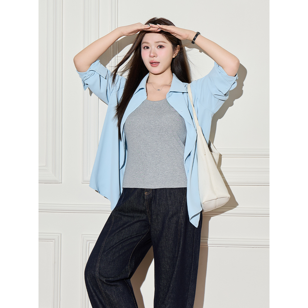 小波家2025秋季 吊带叠穿显瘦百搭弹力内搭背心女 胖mm韩系打底无袖