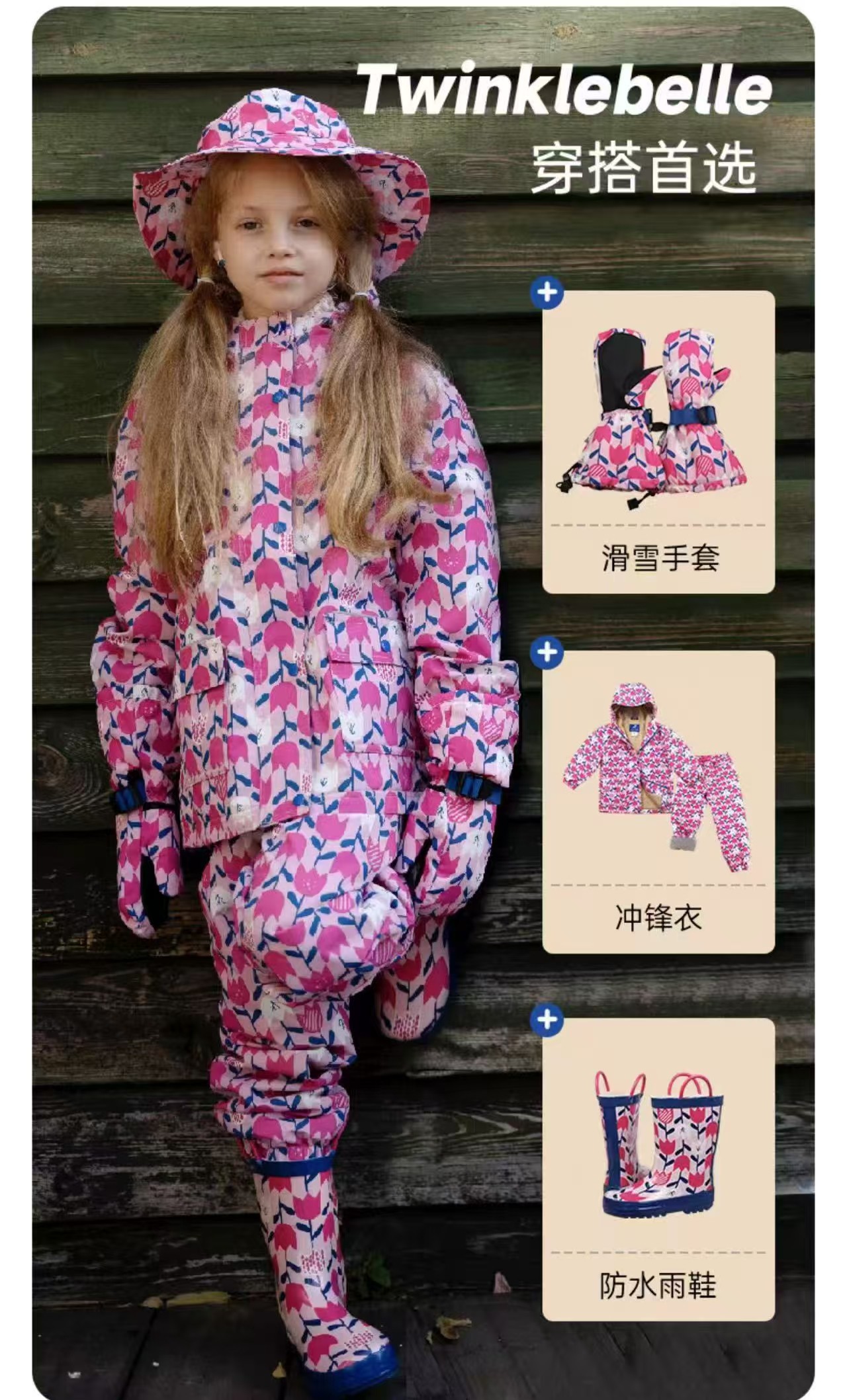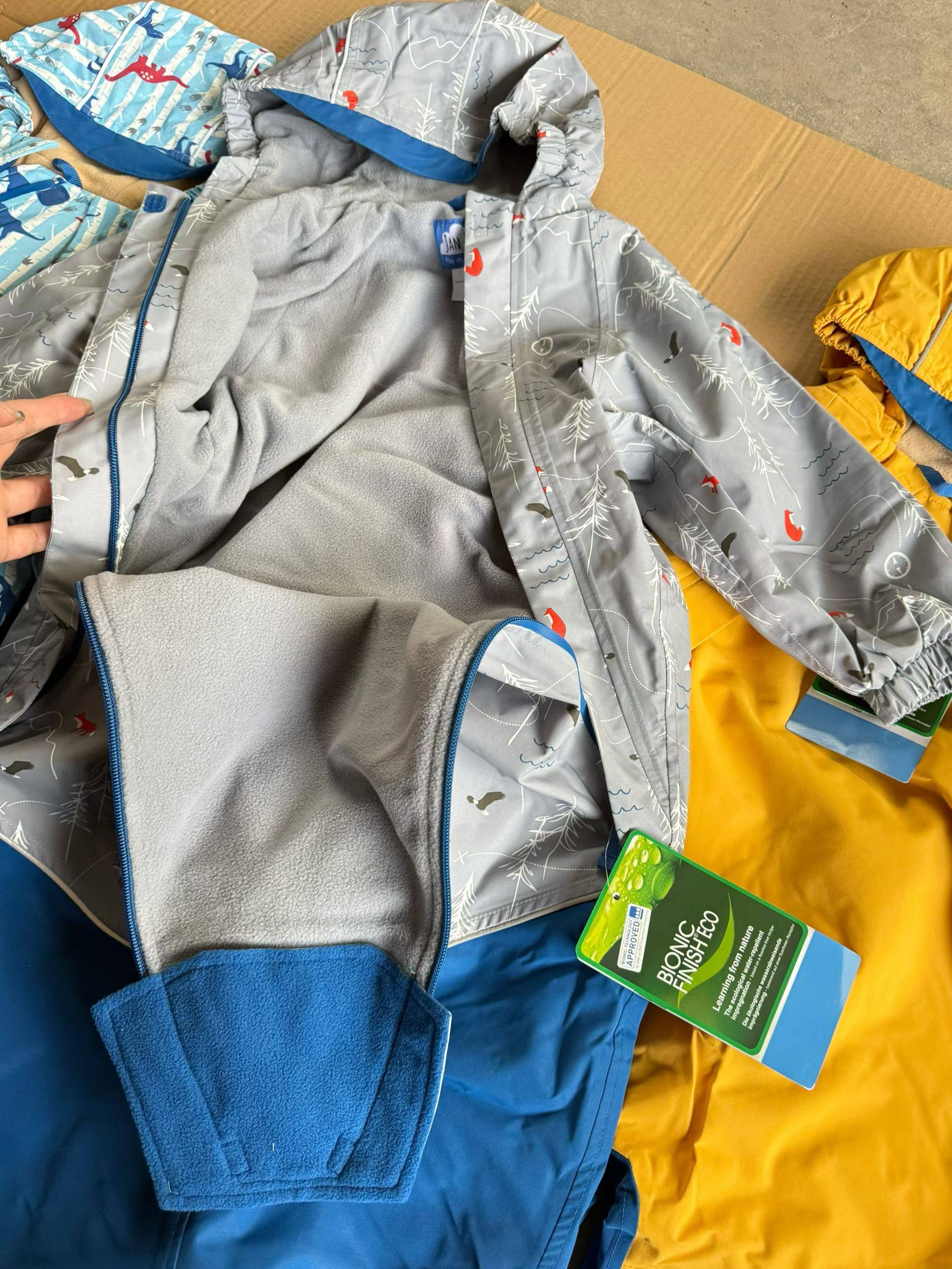 滑雪服套装 外贸原单秋冬宝宝连帽防风防水冲锋衣外套长裤 套装