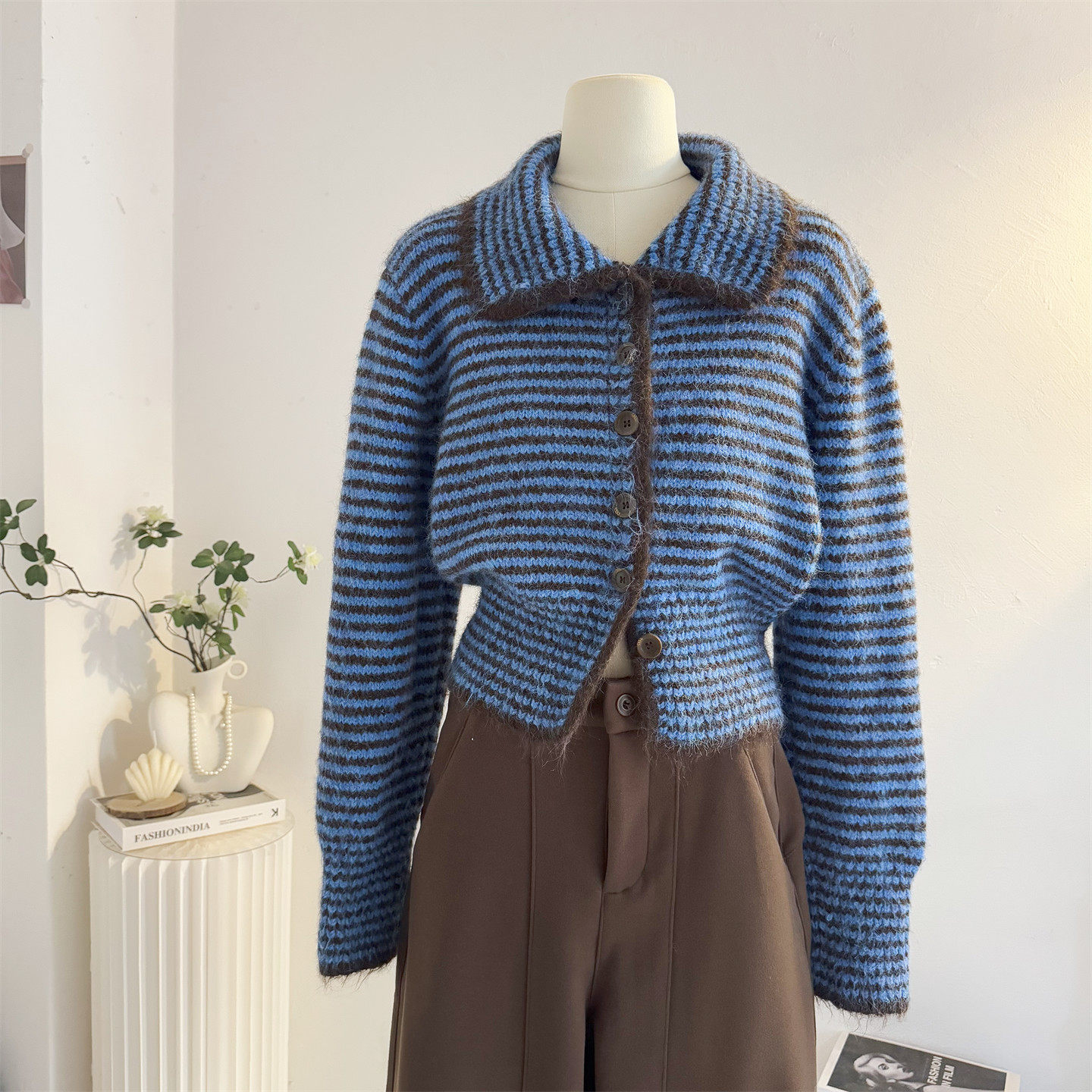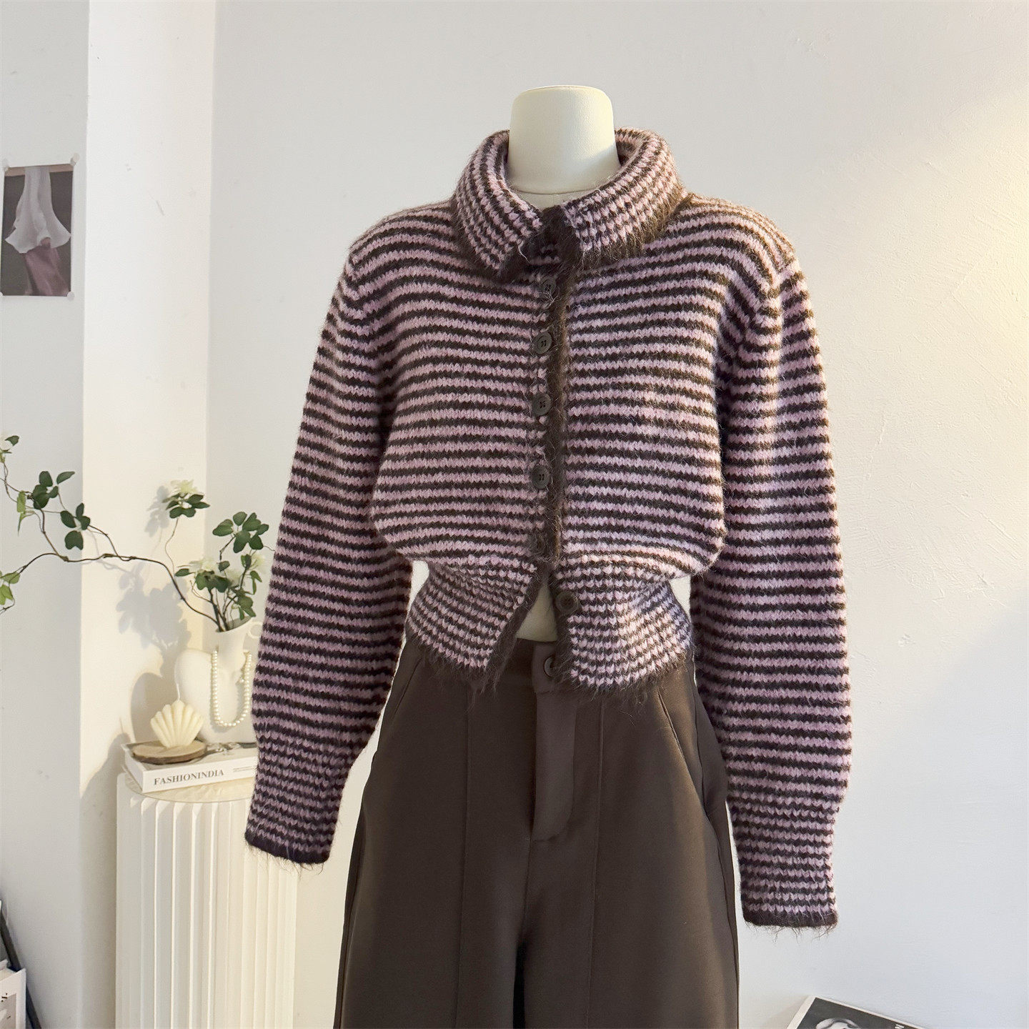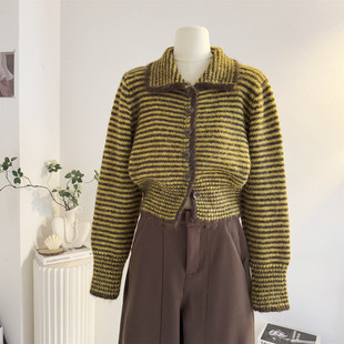 毛衣老钱风绞花打底衫 热风女士针织衫 假两件开衫 新款 2025年秋季