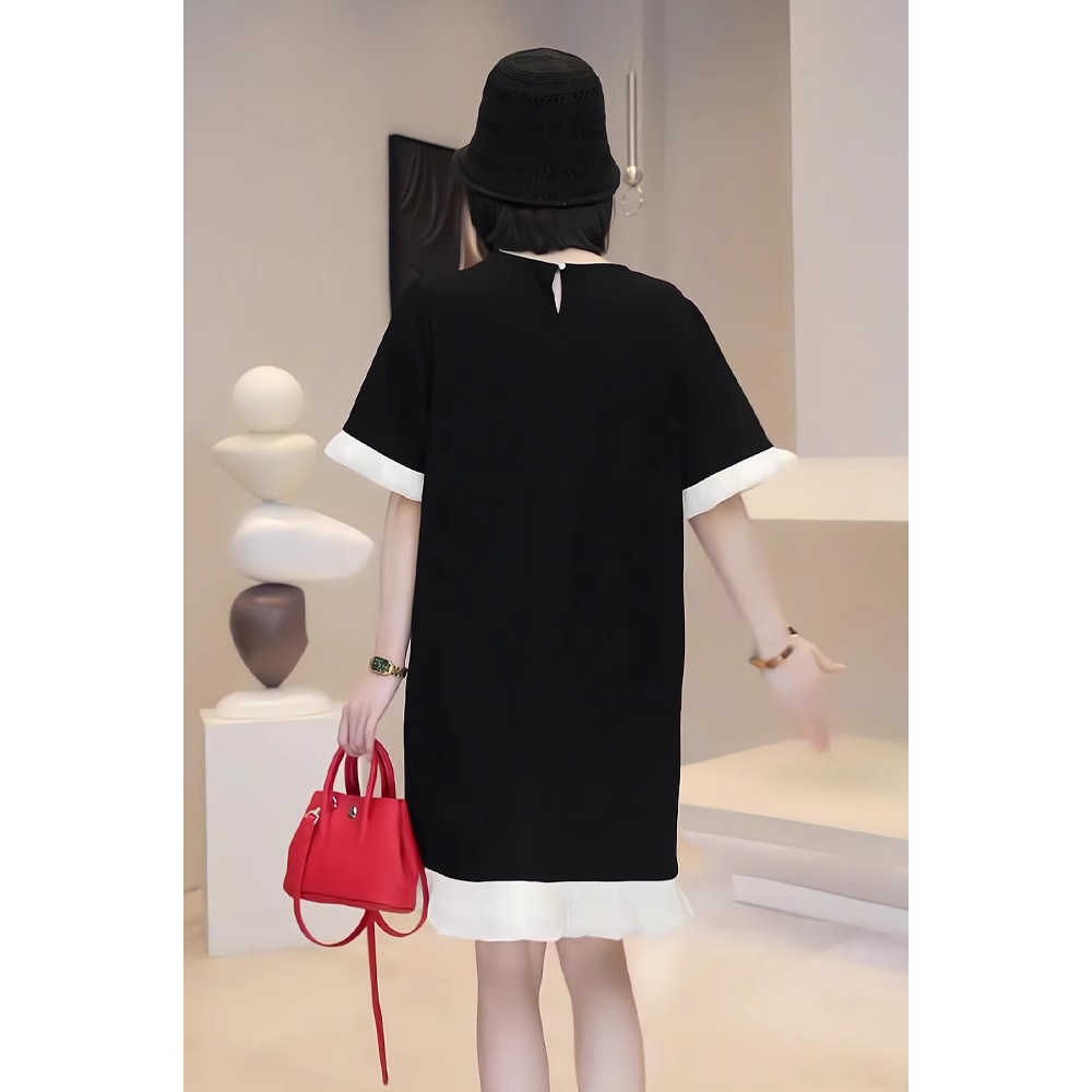宽松显瘦小个子百搭 新款 欧货设计感短袖 拼接连衣裙女2025夏季