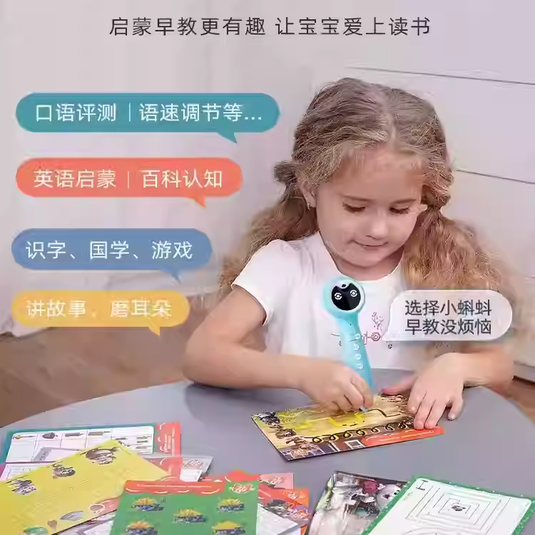 小蝌蚪点读笔a8S旗舰版 幼儿早教宝宝3岁以上拼音智能通用非万能官方店识字阅读绘本幼学毛毛虫小达人