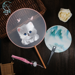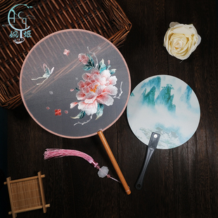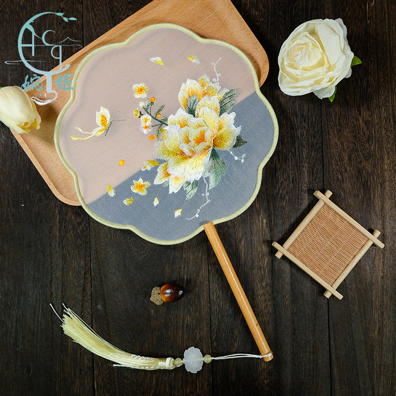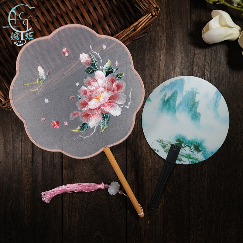 古风扇子刺绣团扇牡丹花鸟绣花扇舞蹈专用扇汉服旗袍拍摄摄影圆扇