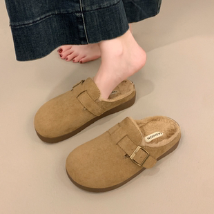 松糕厚底增高跟毛绒居家棉拖 秋季 包头半拖毛毛鞋 女冬外穿2025新款