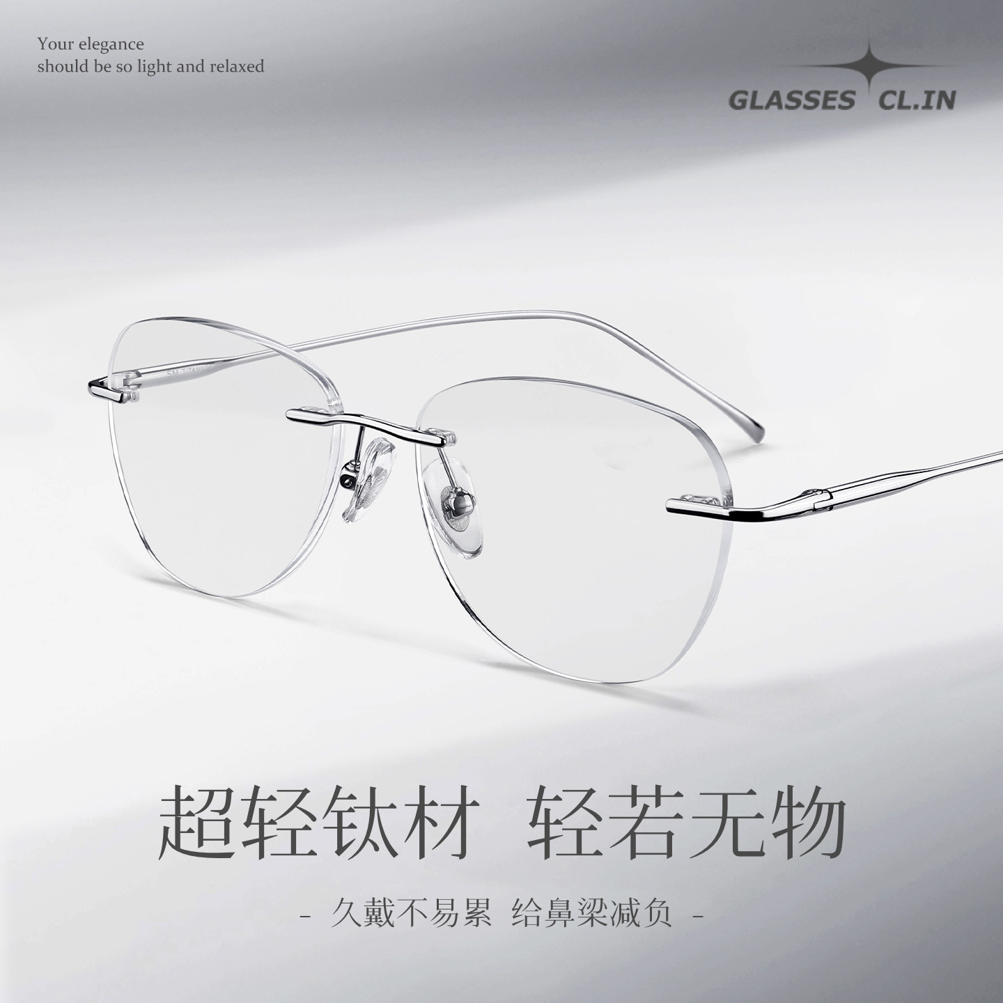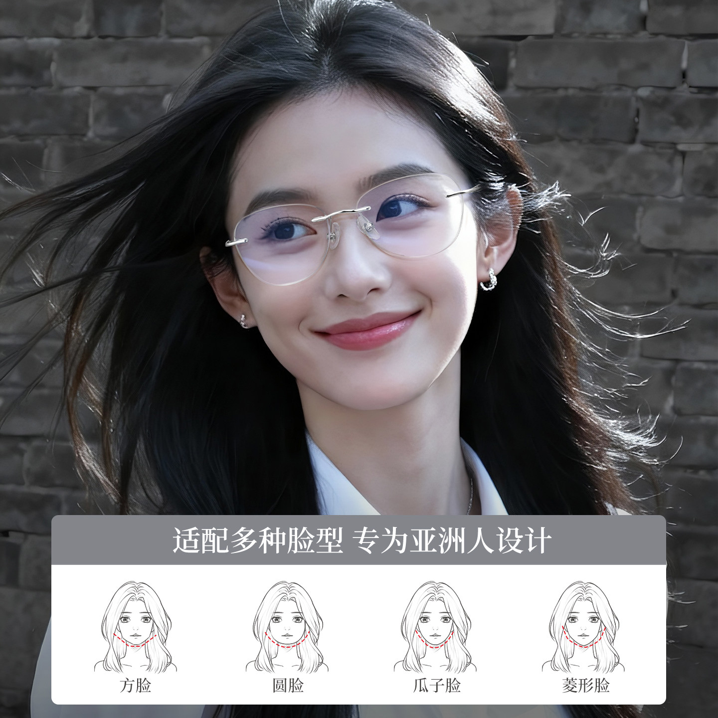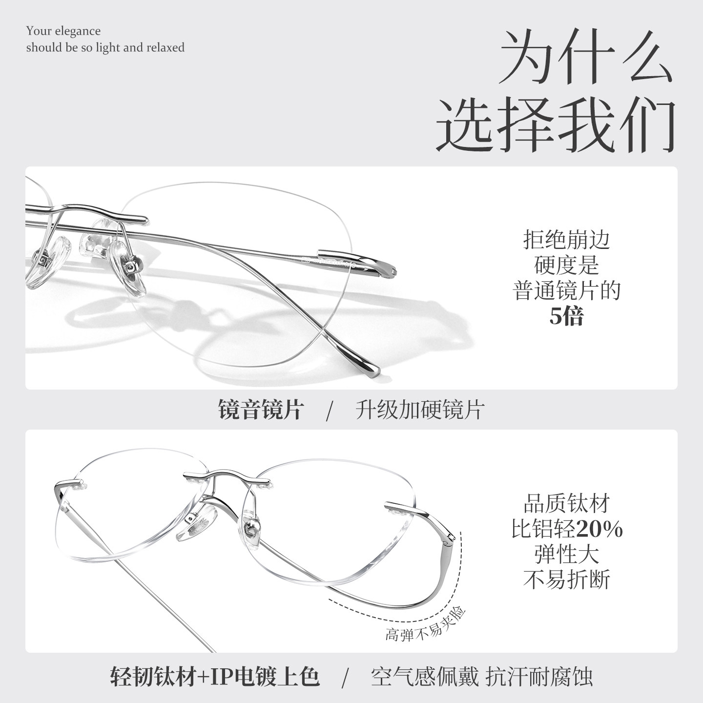超轻钛架纯欲无边框眼镜女款 近视可配度数高级感显脸小无框眼睛架