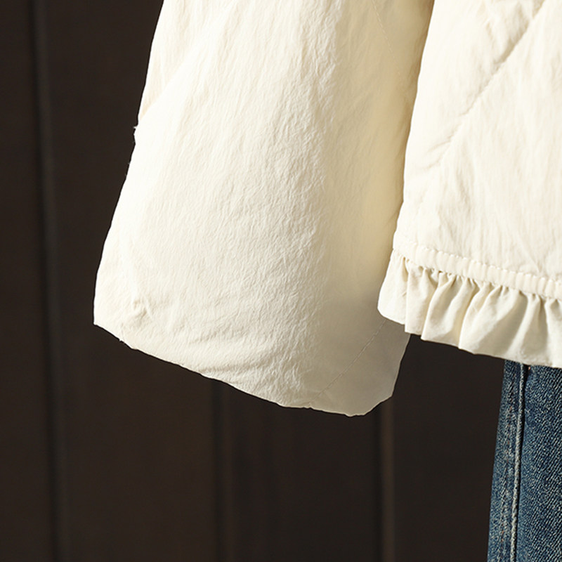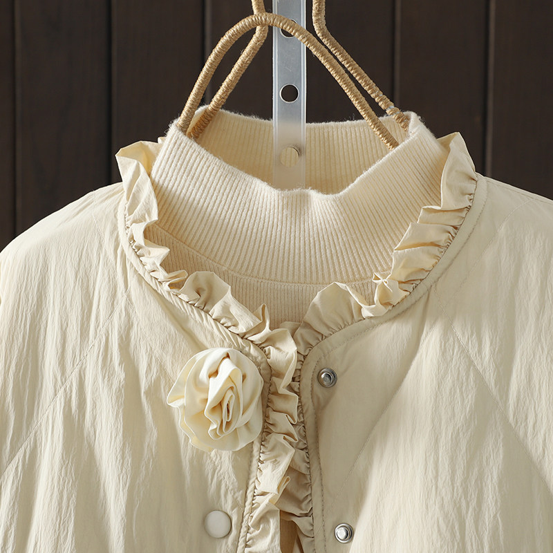 棉衣外套 复古宽松短款 森女系立体花朵木耳边轻薄款 羽绒棉服女冬季
