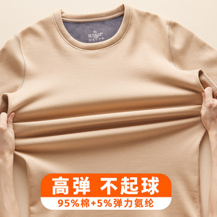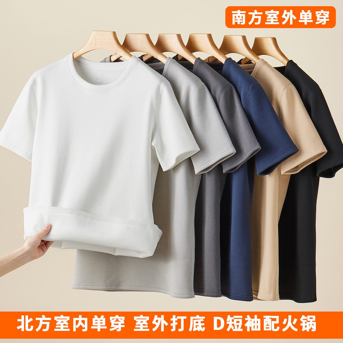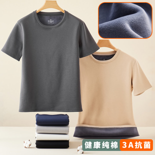 长袖 内穿圆领上衣秋冬季 T恤男士 保暖打底衫 加绒加厚半袖 纯棉短袖