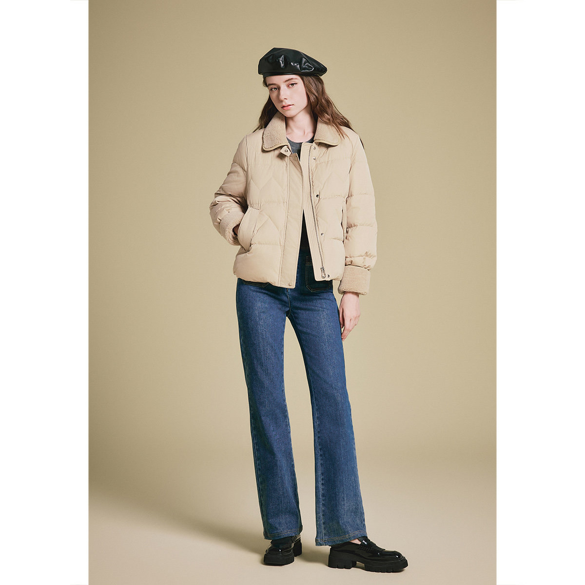 Sixty2025秋新款 Miss 牛仔拼接羽绒服女外套假两件 保暖90鸭绒