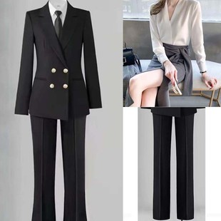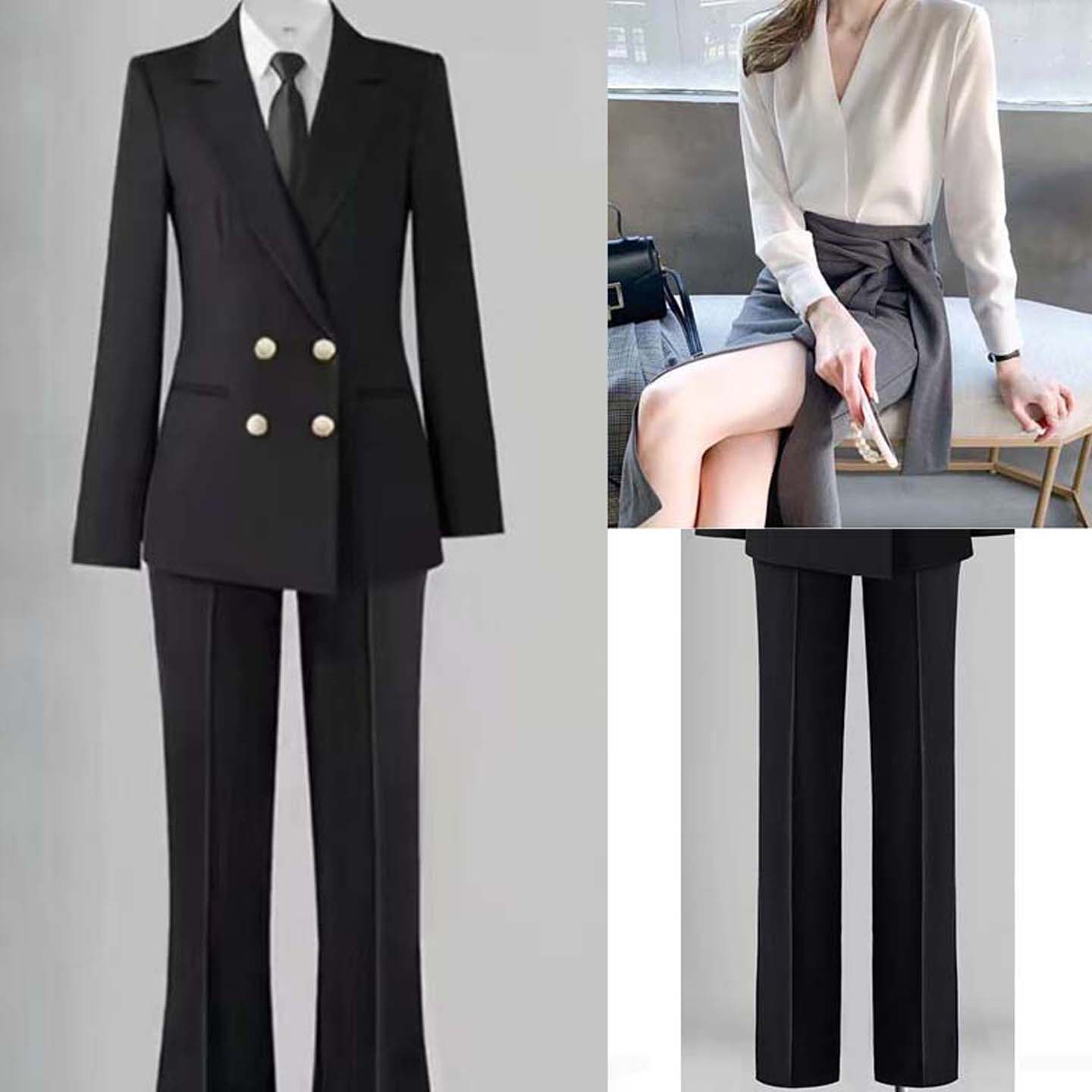 加绒长裤 女秋冬季 气质抗皱休闲西裤 垂感高腰窄版 白色西装 直筒裤 裤