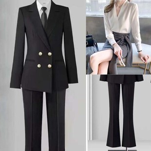 羊毛毛呢正肩大衣 西装 黑色双面羊绒外套女2025秋冬极简风经典 长款