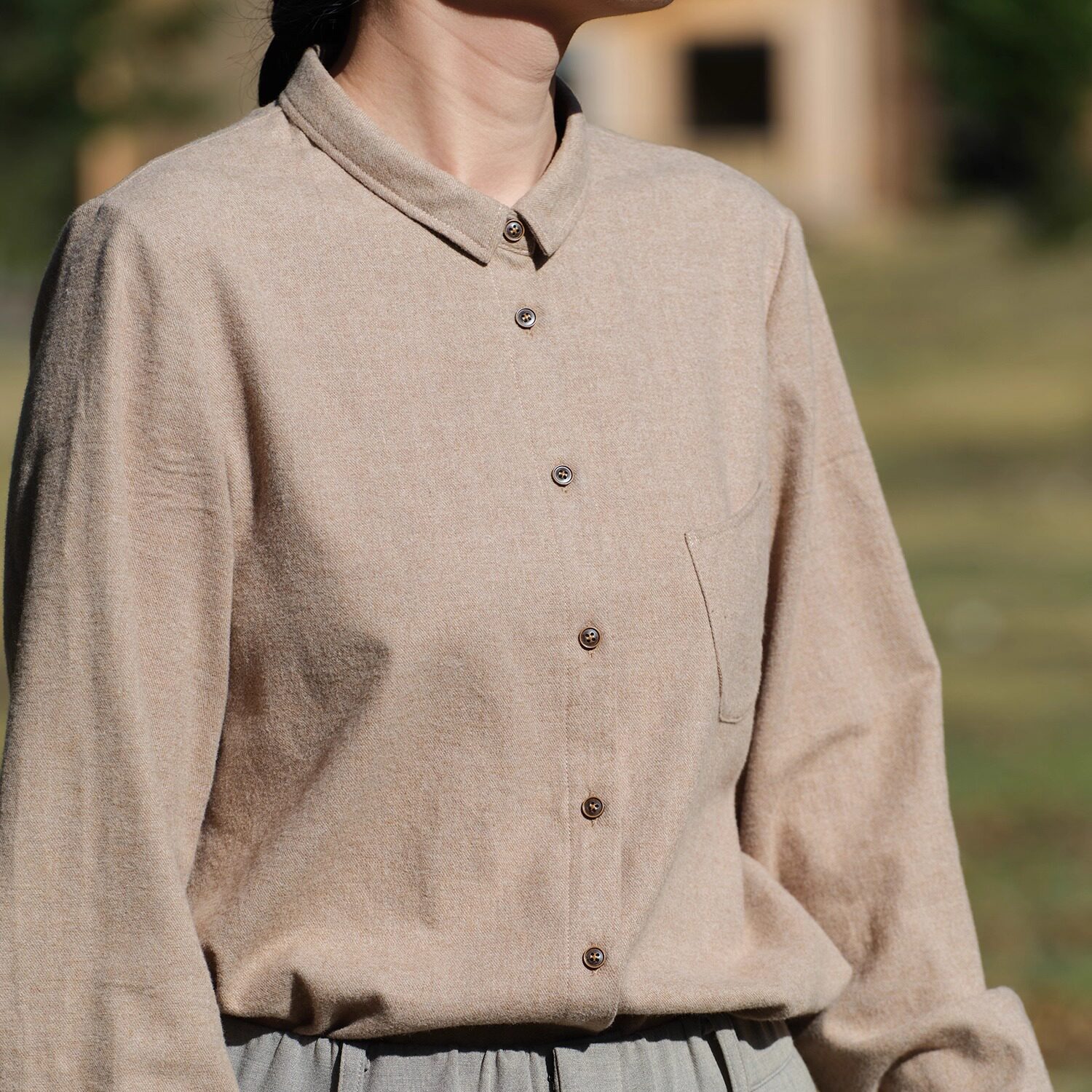 冬新LF5125 叠穿内搭上衣简约翻领长袖 1限 全棉色纱磨毛衬衣 远家