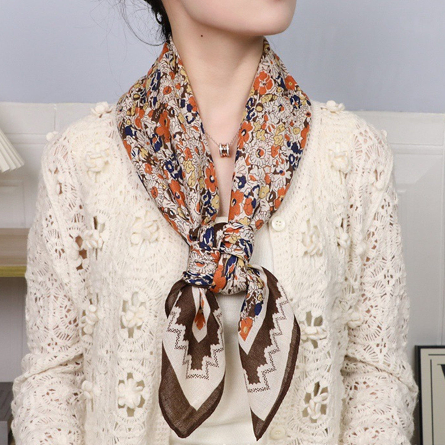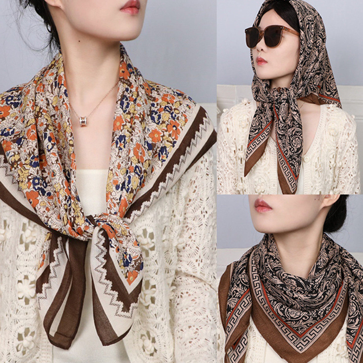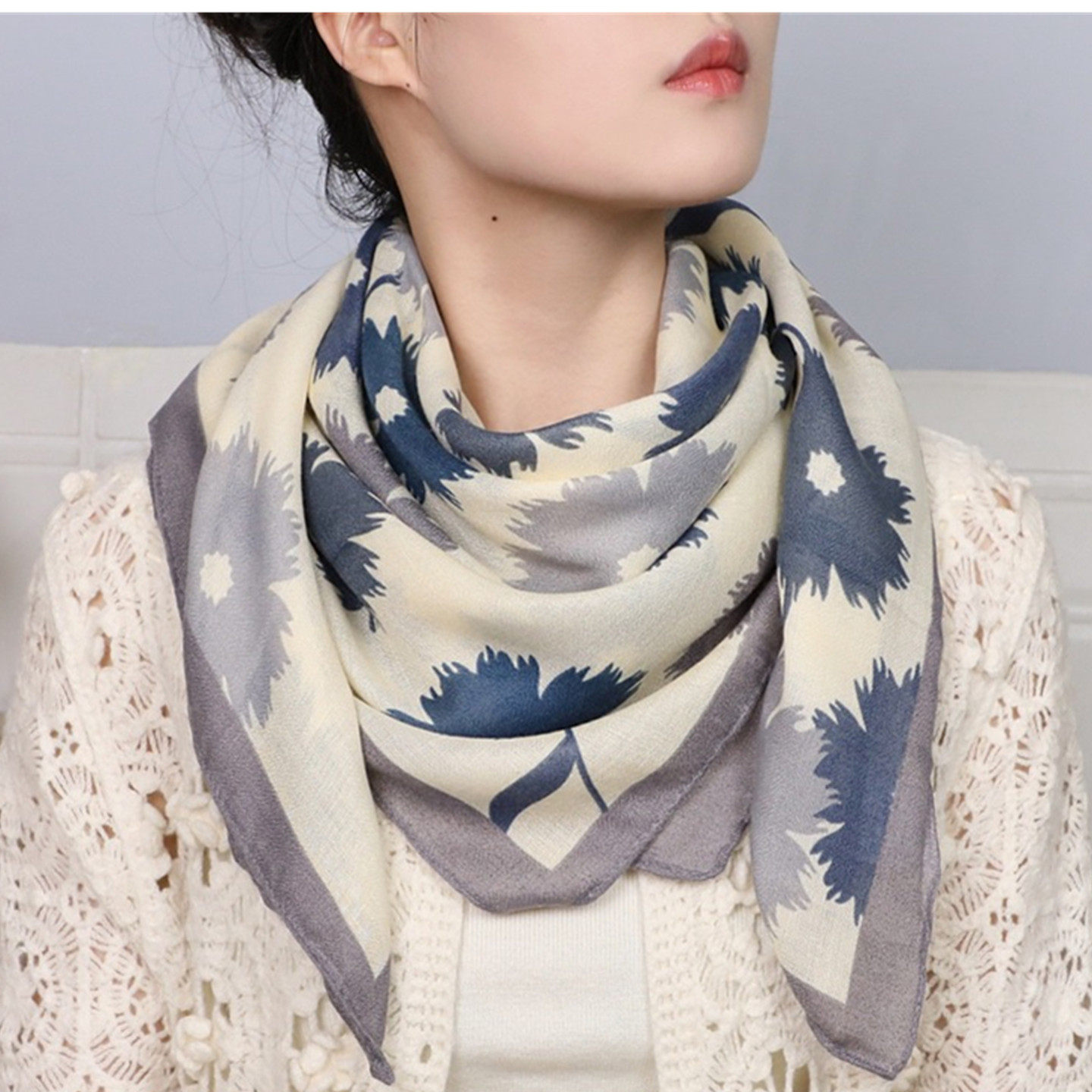 90x90方巾丝巾女2025新款 洋气保暖围脖 秋冬棉麻百搭披肩女士时尚