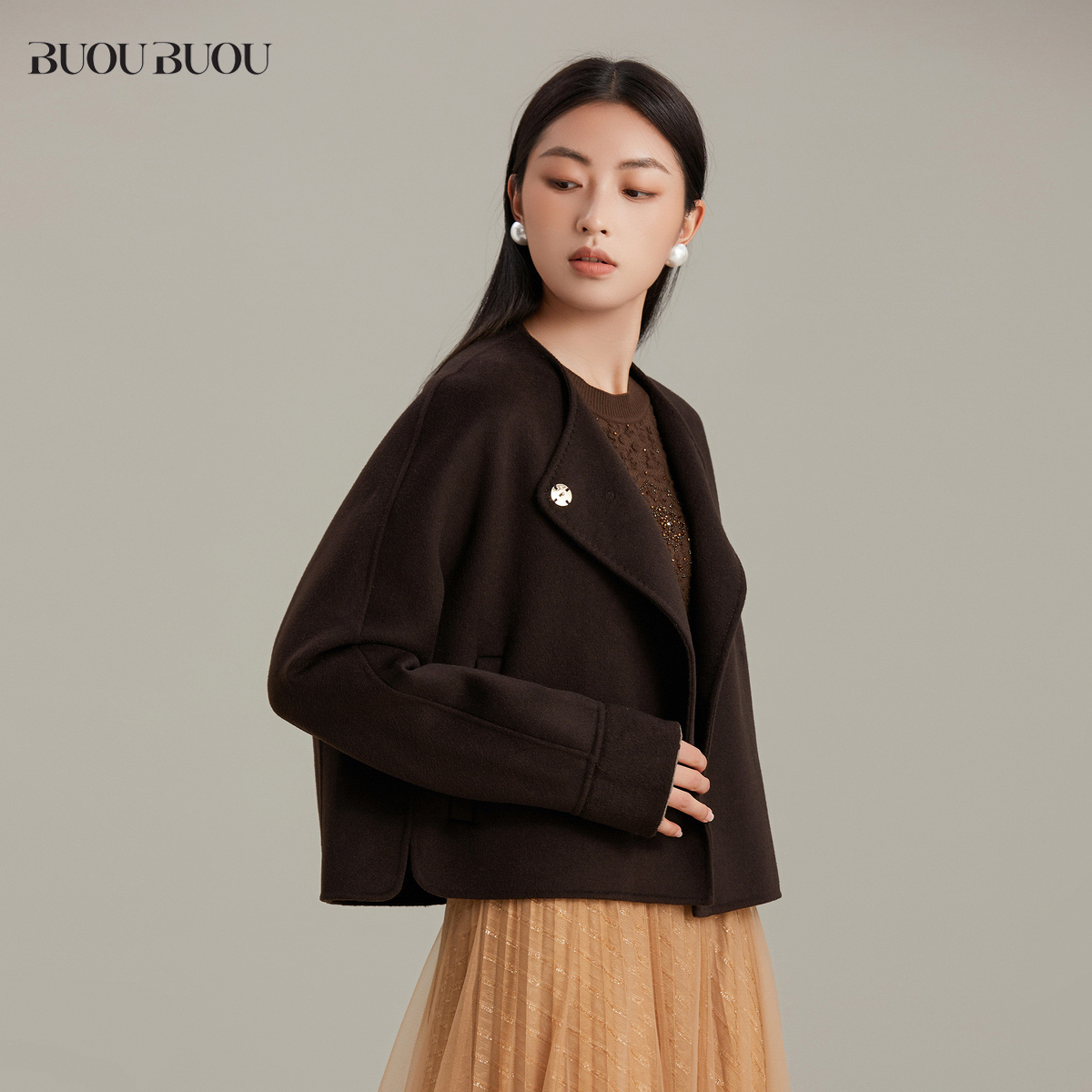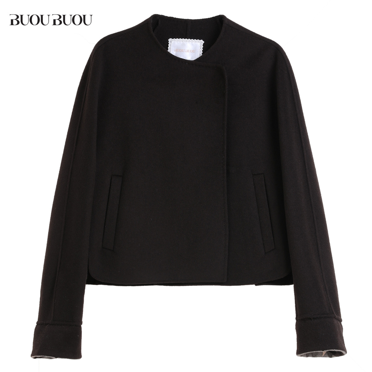 赫本毛呢大衣女英伦风双排扣呢子外套 黑色短款 范洛Fano 2025冬季