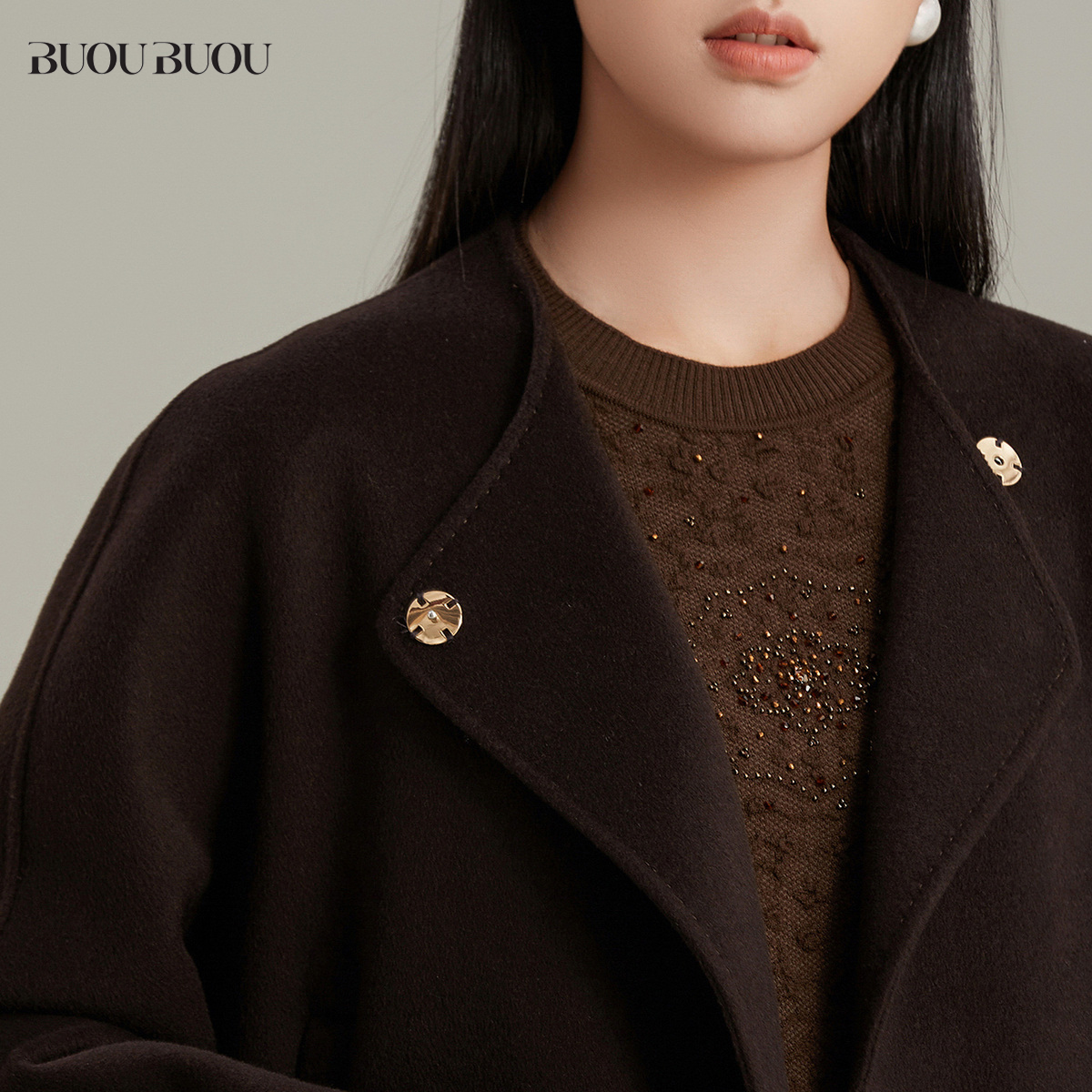 毛呢外套 jk原创日系学院风正肩牛角扣大衣加厚中长款 阿车家 大码