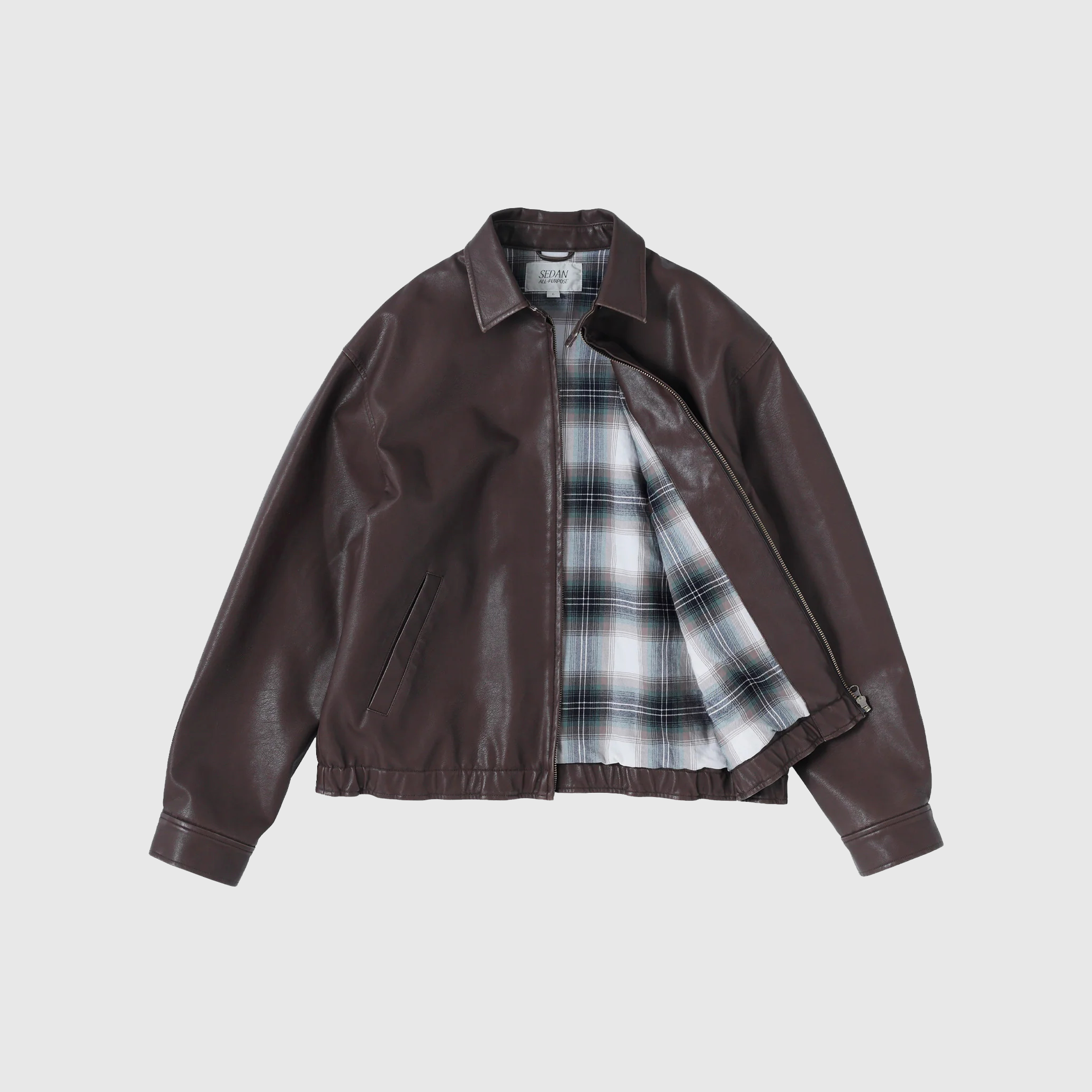 FORNINES刺绣翻领棕色皮衣男女情侣潮牌秋冬pu皮夹克美式 复古外套