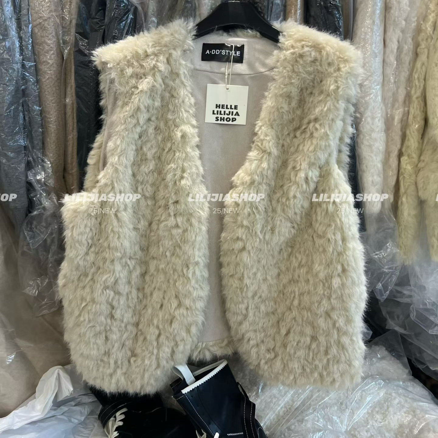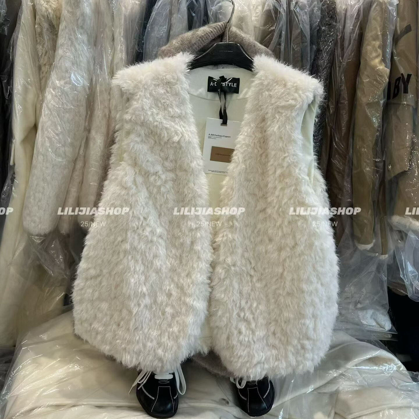毛毛马甲女2025秋冬宽松显瘦外套 百搭V领无袖 黑色高级感韩版 时尚