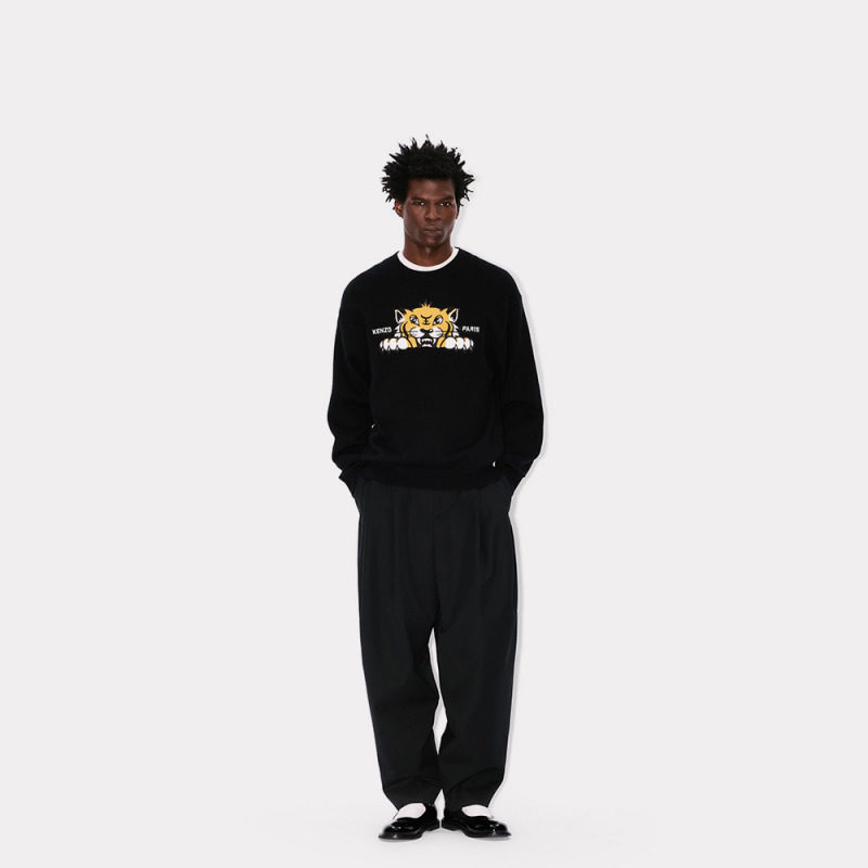 新品 男士 首降 25秋冬新品 老虎图案圆领套头毛衣圣诞 KENZO