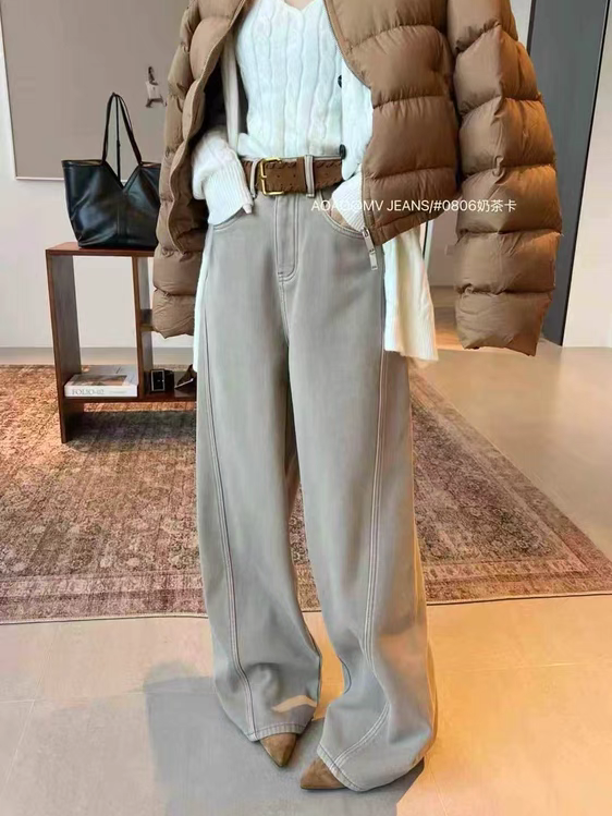 JEANS0806 MV.AOAO 欧货秋冬高腰显瘦百搭休闲宽松弯刀阔腿牛仔裤