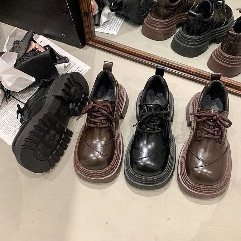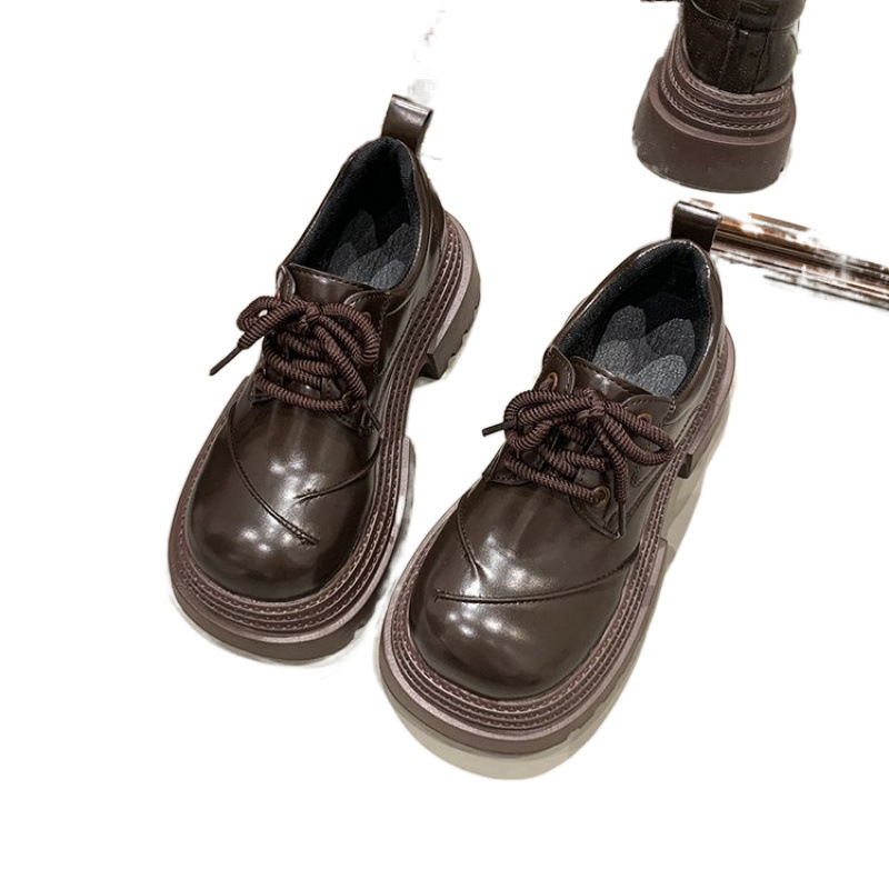 休闲松糕系带乐福鞋 大头厚底增高小皮鞋 时尚 春季 女2025年新款