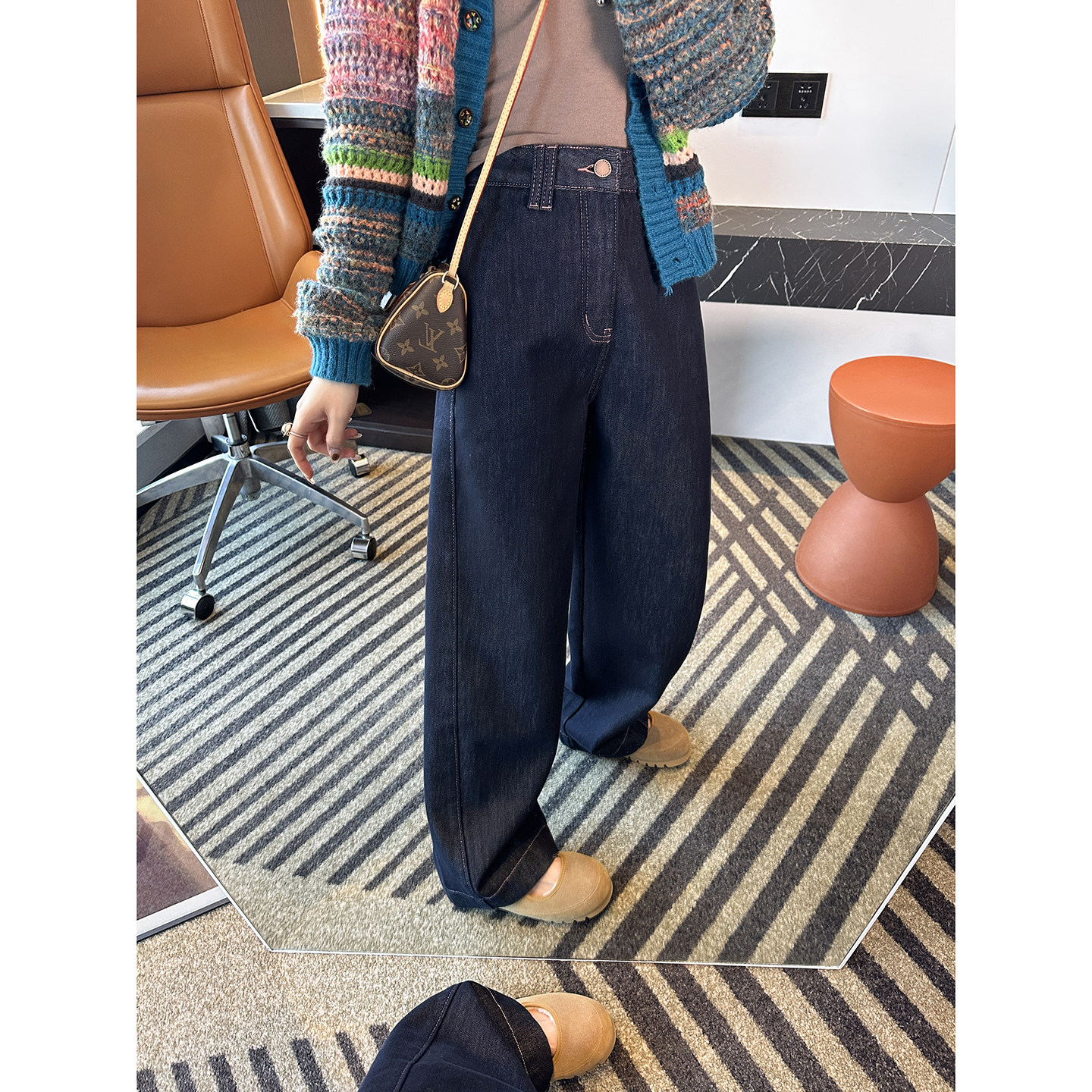 高腰弹力宽松直筒 加绒流行爆款 丹宁蓝阔腿牛仔裤 女2025年秋冬新款