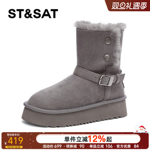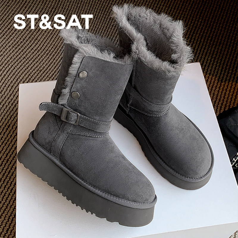 网红增高厚底保暖加绒外穿时尚 女冬季 雪地靴短靴 防水棉鞋 细细条