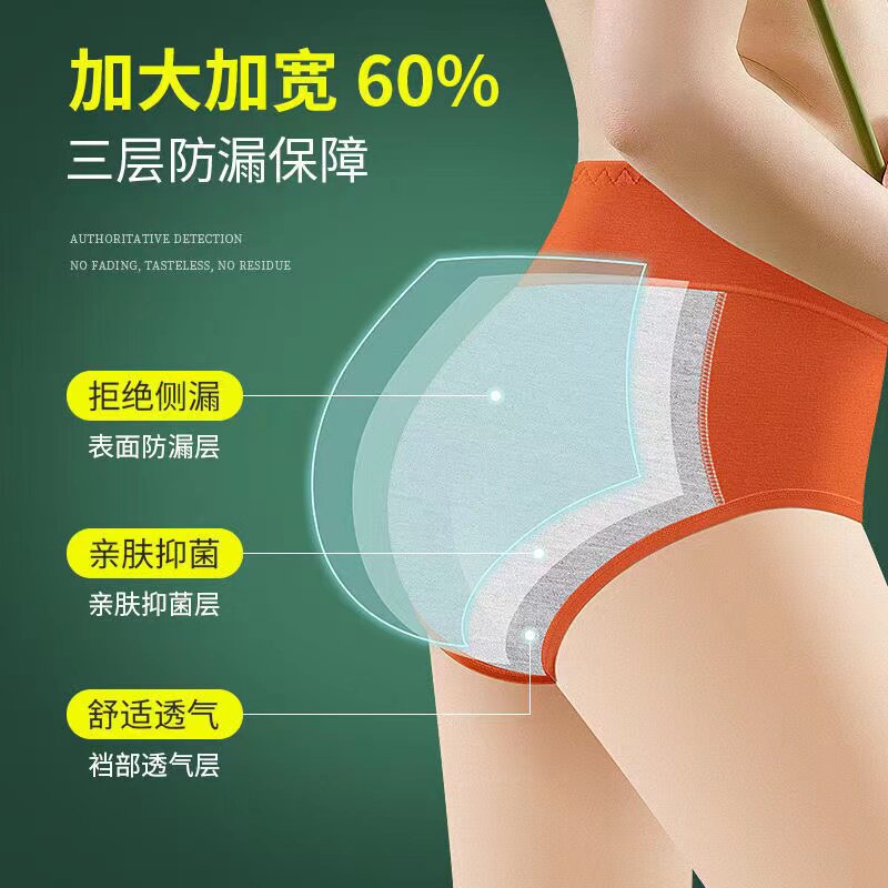 高腰纯棉女士三角裤 安全卫生裤 头 女防漏姨妈期专用内裤 生理期内裤