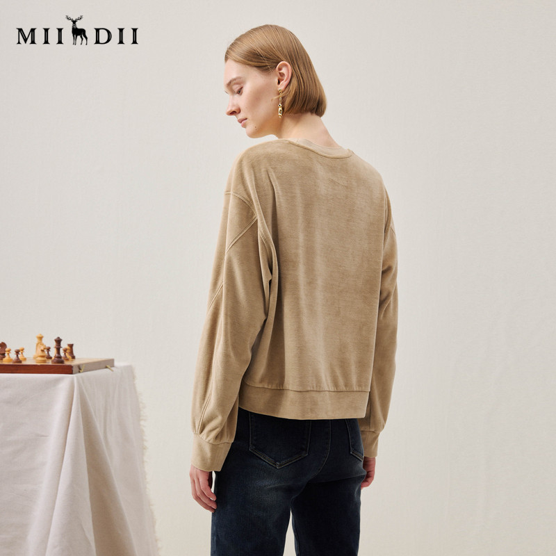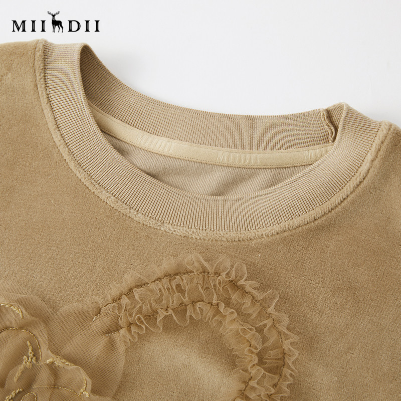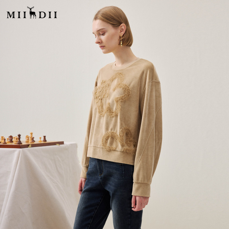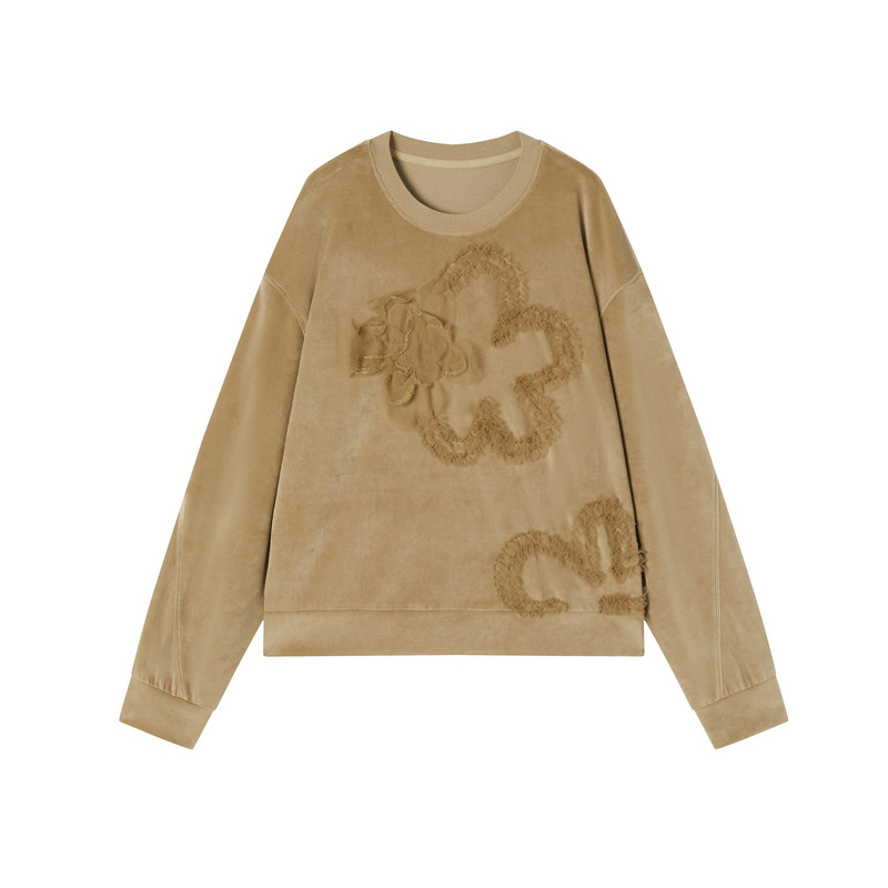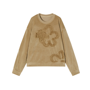 新品 2025年冬季 软糯斑驳绣花微落肩女254MV1502 卫衣长袖 谜底短款