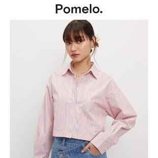 衬衫 条纹设计感小众甜酷短款 上衣女 粉色衬衫 Pomelo