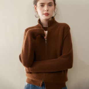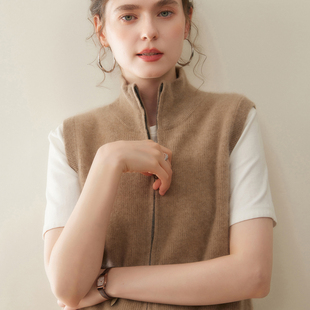 坎肩 毛衣背心宽松羊毛衫 半高领双拉链山羊绒衫 针织马甲女纯色无袖