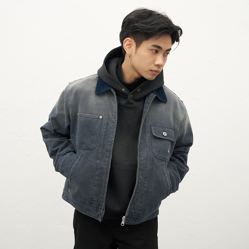 夹克潮 阿美咔叽工装 美式 复古水洗蓝色加绒牛仔外套男2025秋冬新款
