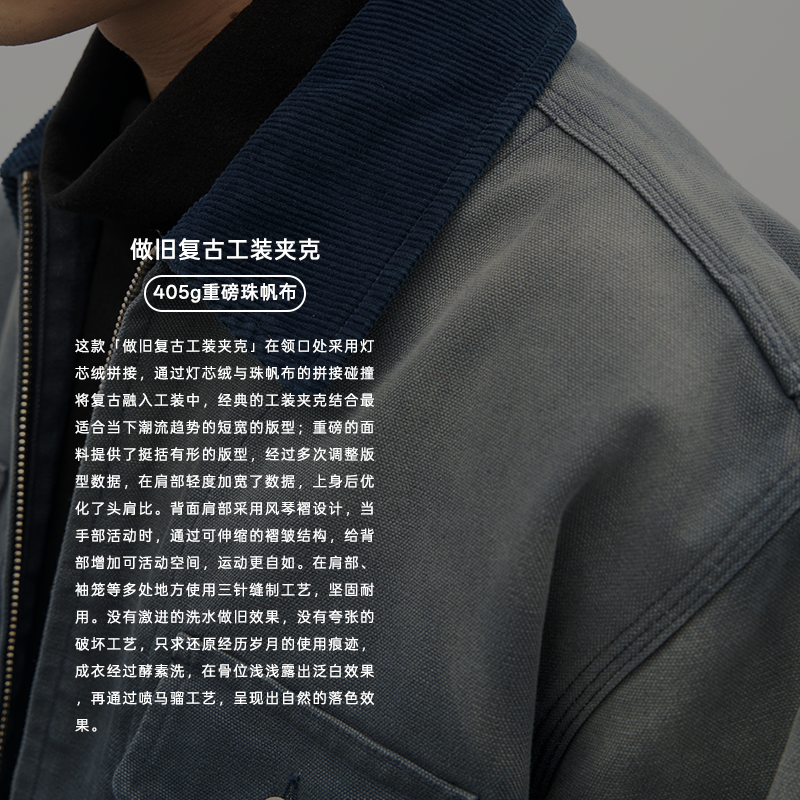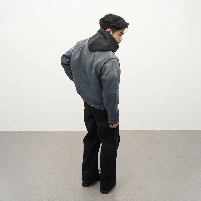马登工装 复古水洗牛仔J130连帽夹克重磅做旧Vintage外套男秋 美式