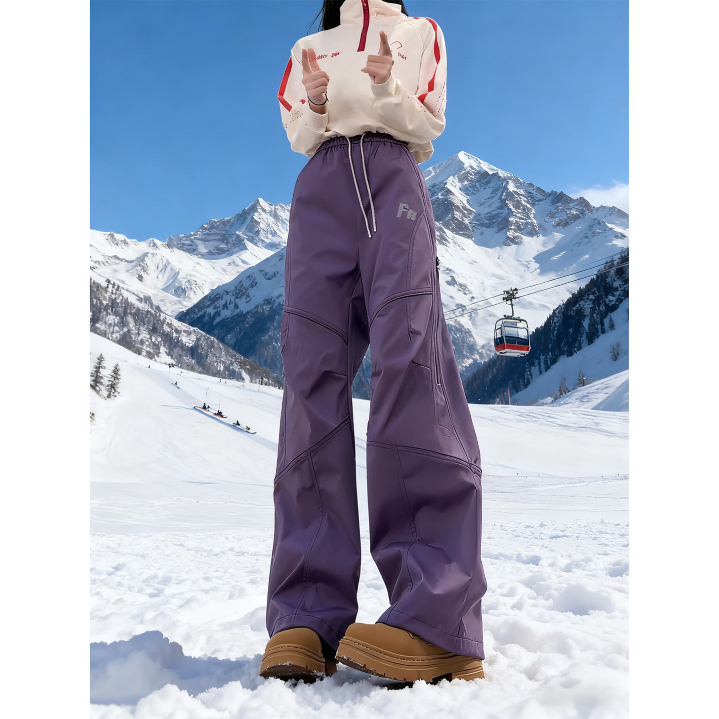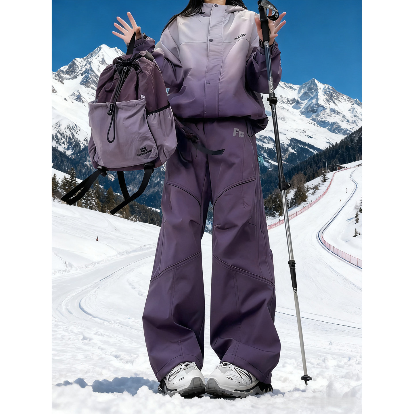 子 加绒户外登山裤 东北零下40度紫色滑雪裤 男女秋冬防寒防水冲锋裤