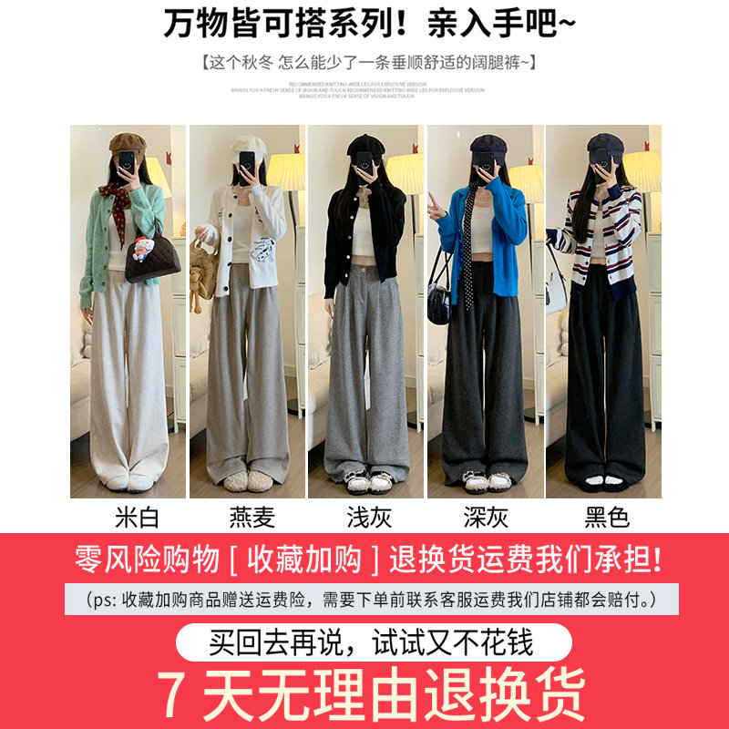 高腰显瘦直筒小个子加绒毛呢阔腿裤 女秋冬2025新款 裤 白色糯米西装