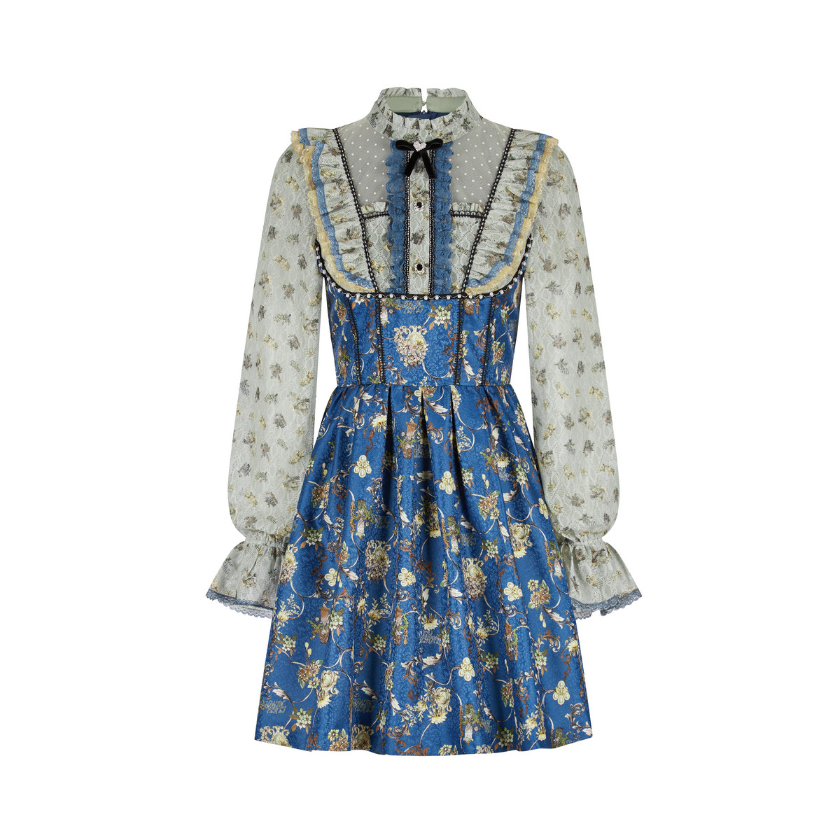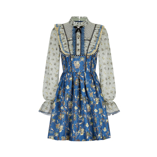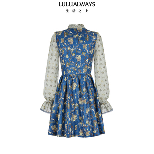 甜美娃娃领提花荷叶边短连衣裙 法式 LULUALWAYS我爱露露25春季 新款