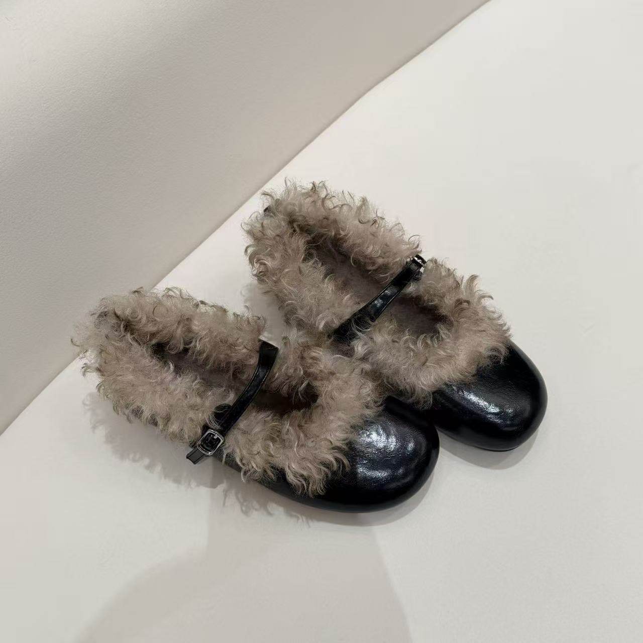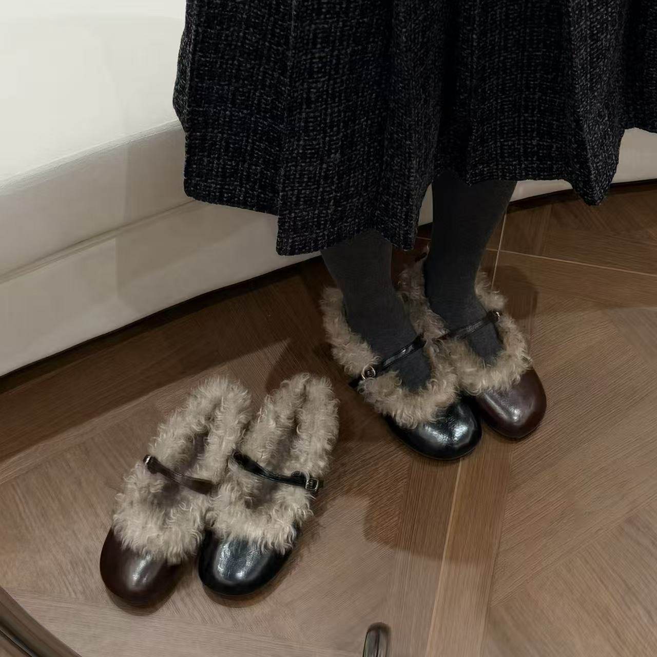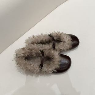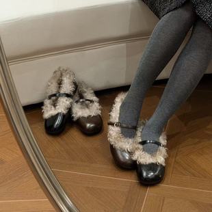 玛丽珍 仓库古早千金感浅口圆头毛绒小皮鞋 H55女鞋 低像素2025冬季