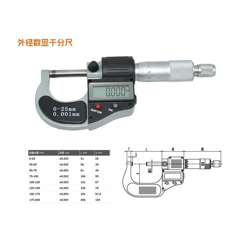 广陆0 25mm数显外径千分尺0.002mm液晶屏显示读数清晰电子千分尺