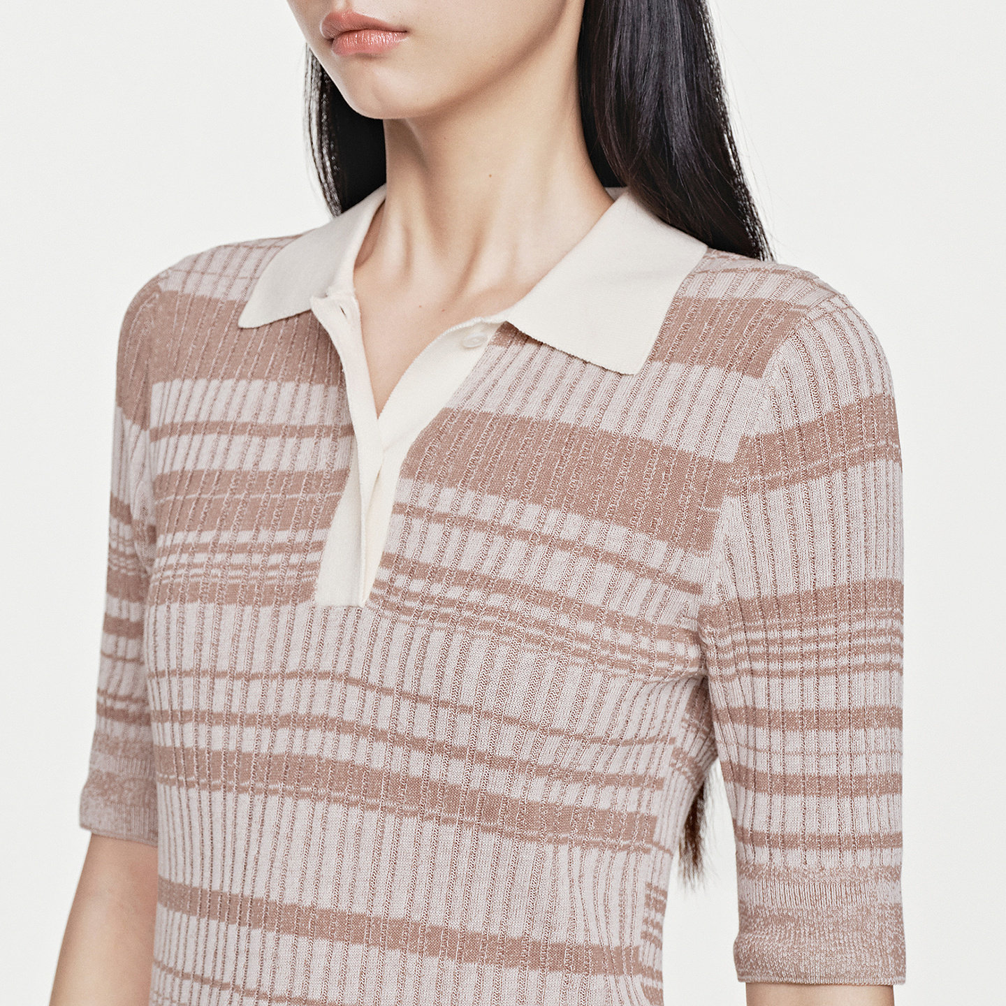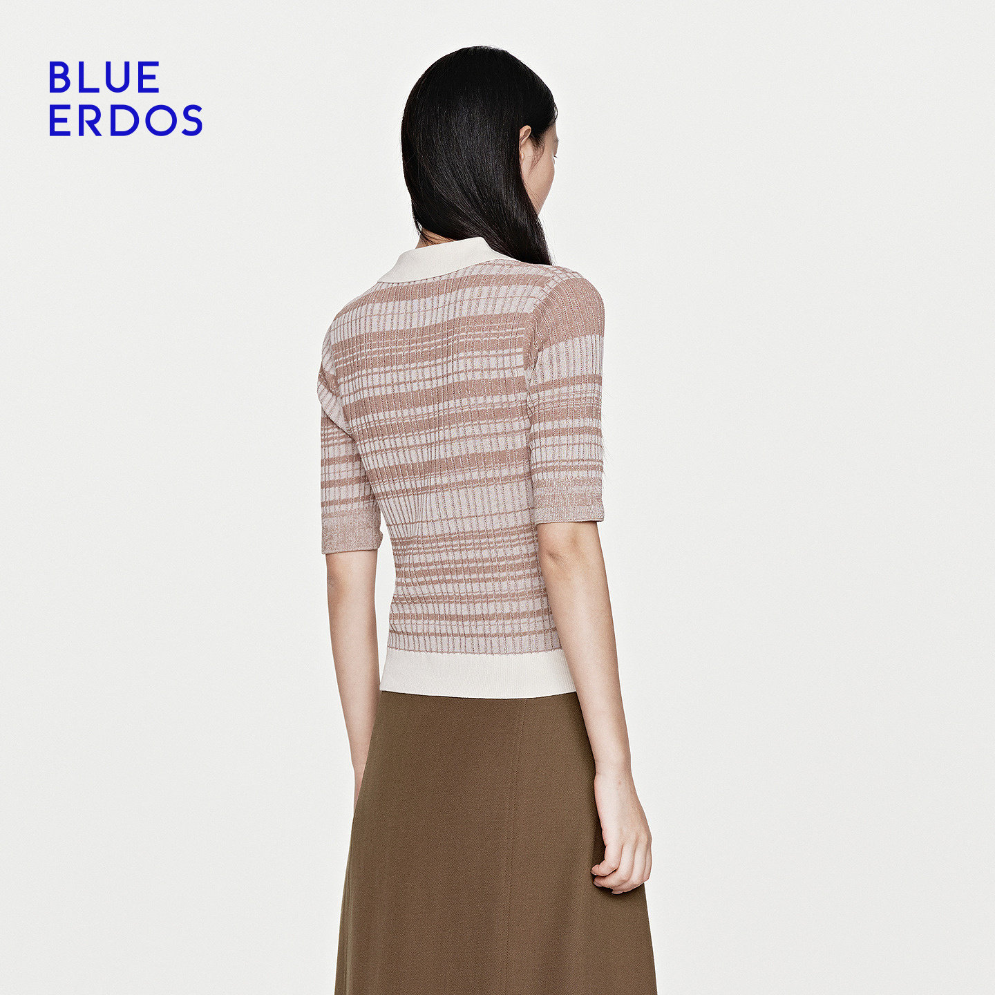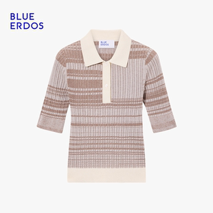 100%棉 针织衫 BLUE 休闲百搭撞色小翻领半袖 女 ERDOS26早春新品