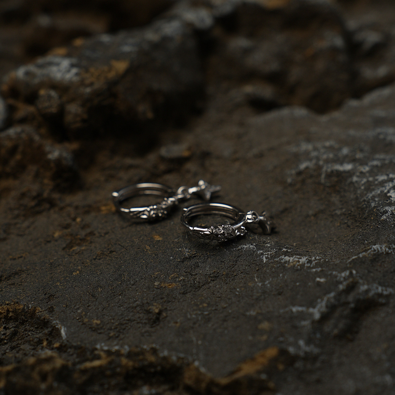 YiJianStudio s925纯银男生单只原创设计耳环女耳钉简约肌理吊坠