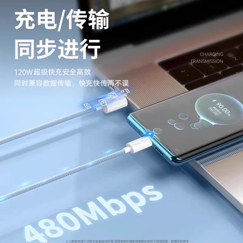 弎希数据线适用华为荣耀系列120W快充充电线编织灰白2米单条装